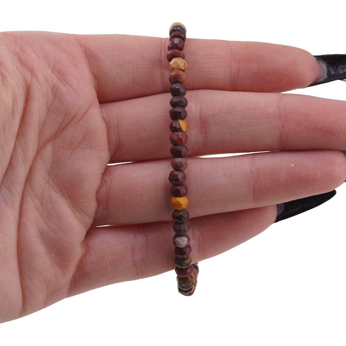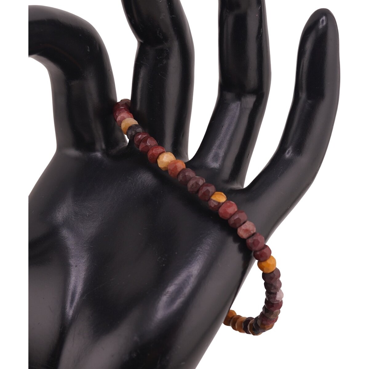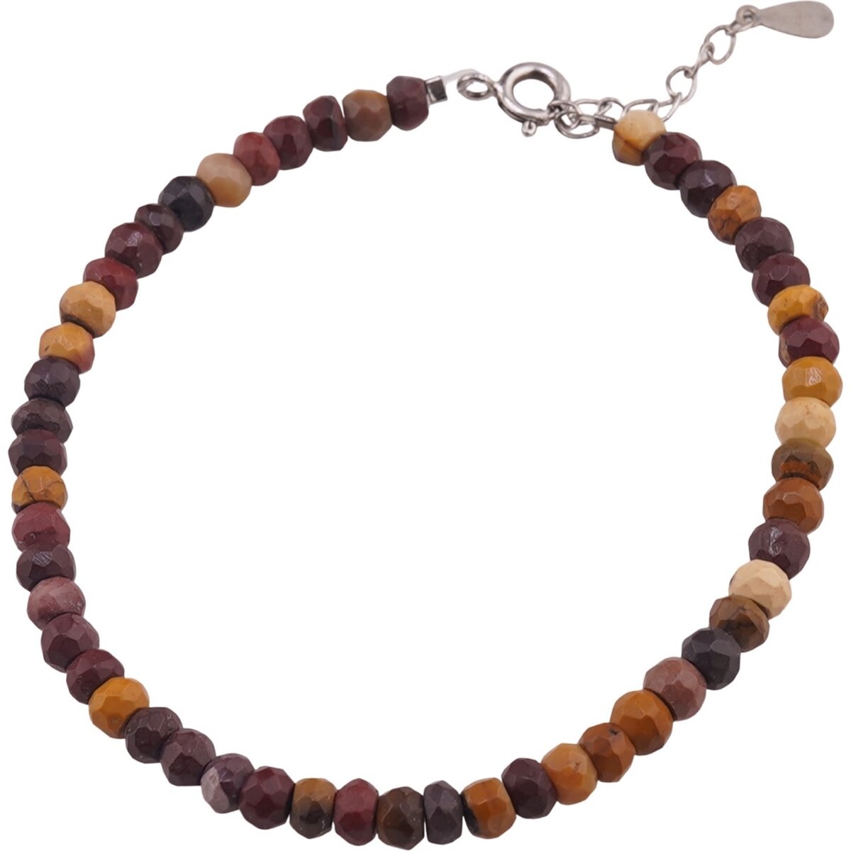 Bratara Mookait cu discuri fațetate de 4-5 mm și argint 925 este creată pentru tine dacă îți dorești mai multă energie, curaj și inspirație în viața de zi cu zi. Mookaitul, cunoscut și ca jasp australian sau piatra vitalității, se remarcă prin nuanțele calde de galben și roșu, care dau impresia unui peisaj pământesc plin de viață. Alăturat cu argintul 925, cristalul natural își păstrează frumusețea autentică și devine ușor de purtat în orice moment.