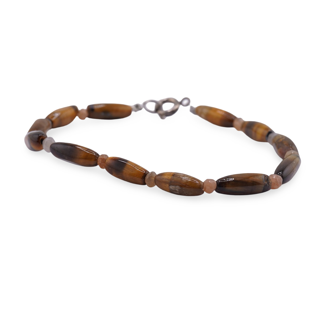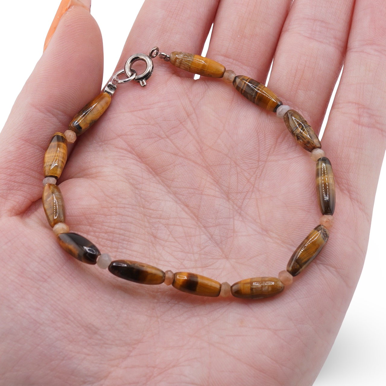 Bratara Ochi de tigru tuburi 10-14mm si Piatra lunii dicuri fatetate 3mm