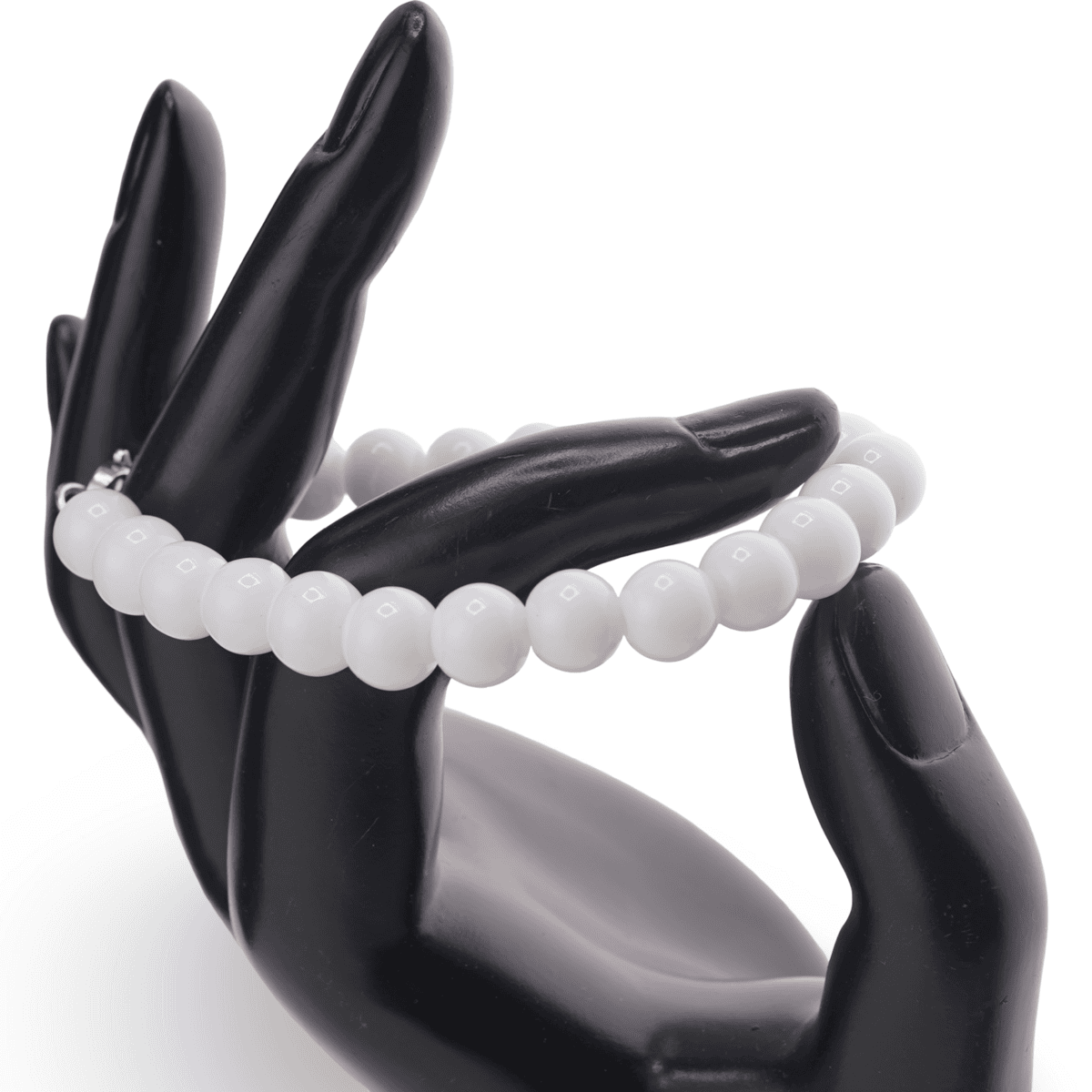 Poartă această brățară din onix alb cu sfere perfect rotunde de 8 mm ca pe un memento blând că ești susținut în propriul drum. Lasă energia Pământului să te ancoreze, iar curajul și voința să te însoțească în fiecare pas, transformând acest accesoriu într-un aliat discret, dar prezent, în viața ta de zi cu zi.