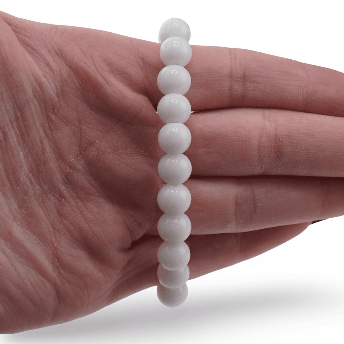 Bratara Onix alb sfere 8mm – echilibru, curaj și protecție în fiecare zi