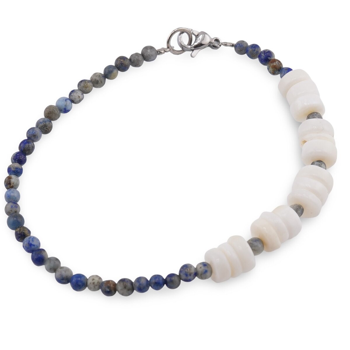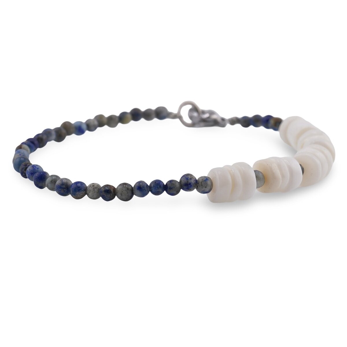 O alegere armonioasă pentru momentele în care vrei să te reconectezi la liniște și inspirație, această brățară îmbină tonurile curate de alb și albastru într-o compoziție discretă și elegantă. Discurile netede de opal alb alternează cu sferele fine de Lapis Lazuli, formând un ritm plăcut pe încheietură. Piatrele sunt cristale naturale 100%, atent selecționate, astfel încât fiecare reflex și nuanță să rămână autentică și plăcută privirii.