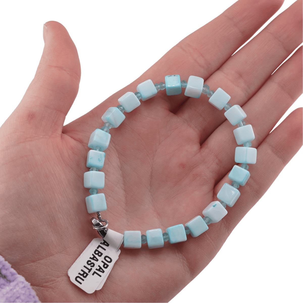 Bratara Opal albastru cub 5-6mm si discuri fatetate 3mm, Lungime bratara: 19cm - Mana medie Bratara Opal albastru cub 5-6mm si discuri fatetate 3mm, Lungime bratara: 17cm - Mana mica Bratara Opal albastru cub 5-6mm si discuri fatetate 3mm, Lungime bratara: 21cm - Mana mare Bratara Opal albastru cub 5-6mm si discuri fatetate 3mm, Lungime bratara: 14cm - Mana de copil
