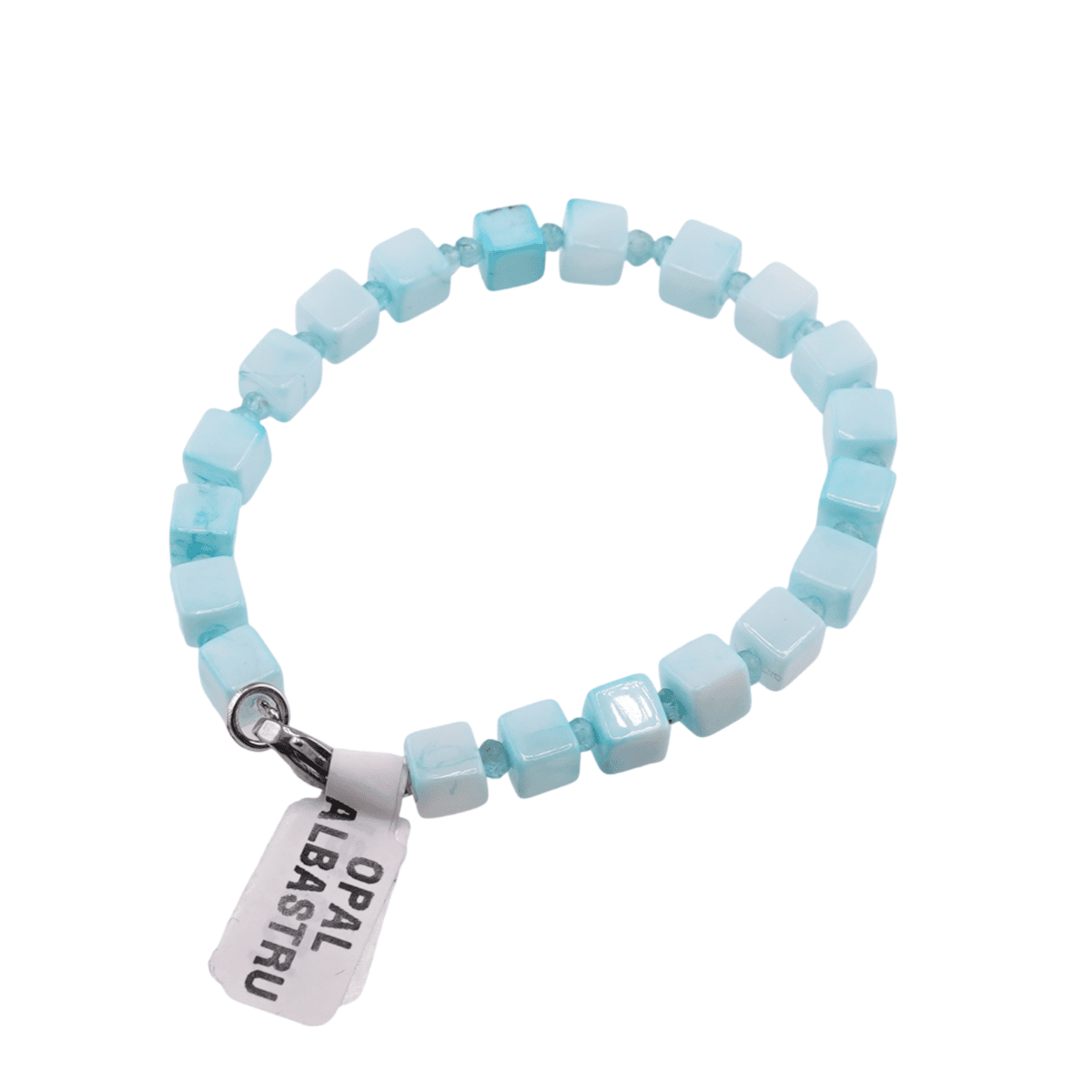 Bratara Opal albastru cub 5-6mm si discuri fatetate 3mm, Sistem inchidere: Inchizatoare metal rodiat Bratara Opal albastru cub 5-6mm si discuri fatetate 3mm, Sistem inchidere: Inchizatoare argint 925