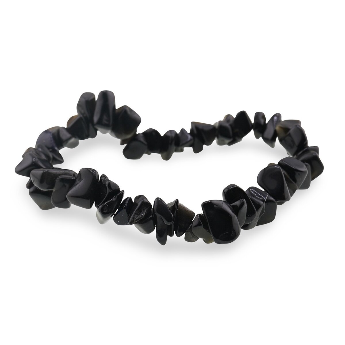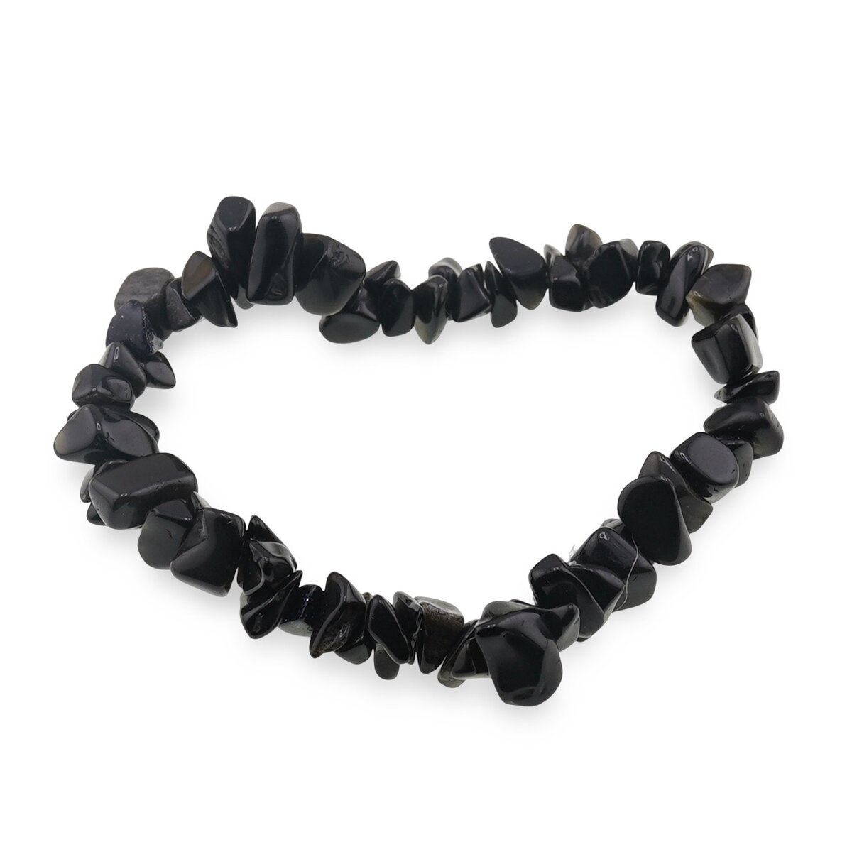 Brățara pe elastic cu pietre chips Obsidian auriu