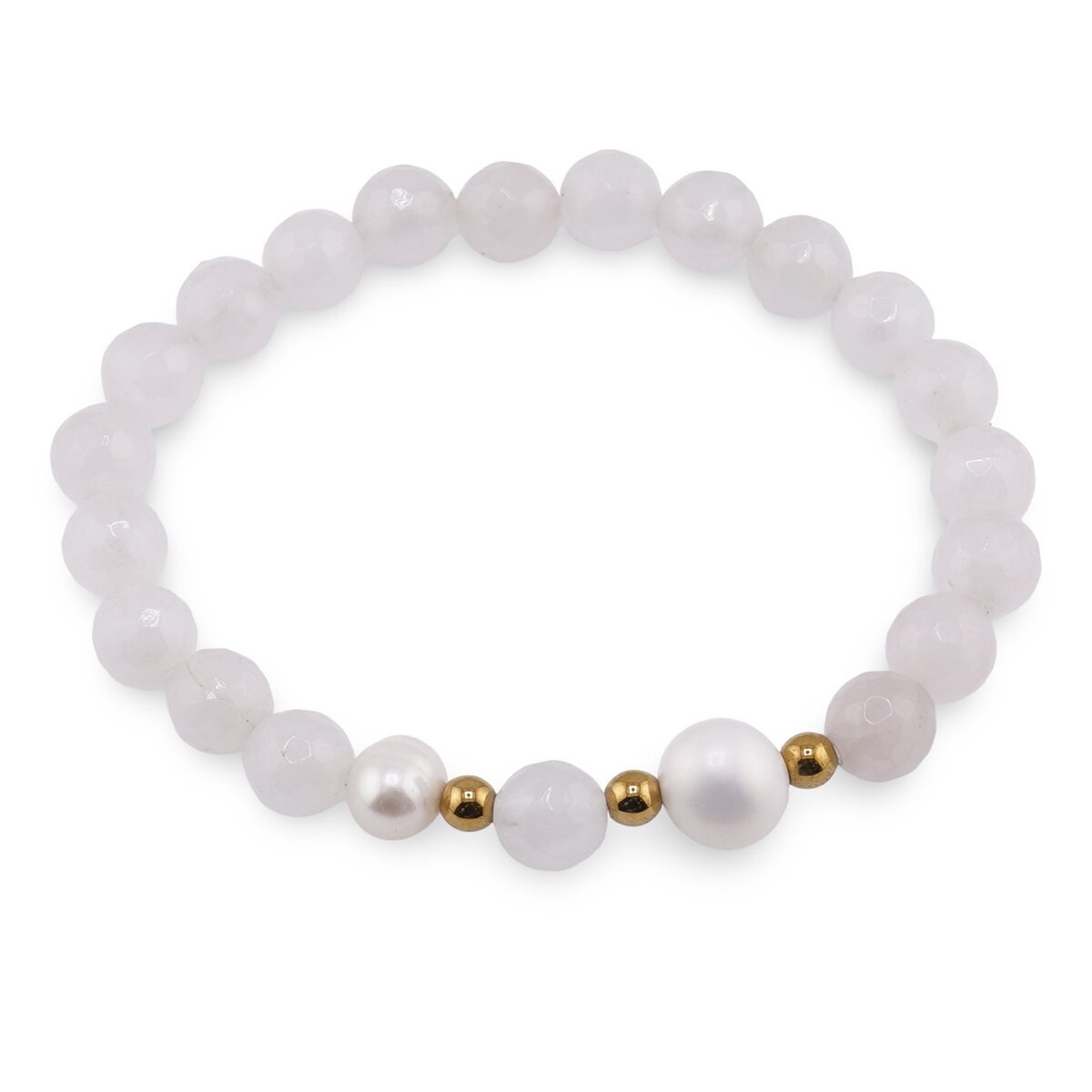 Gândită pentru momentele în care îți dorești liniște și eleganță discretă, această brățară elastică îmbină luminozitatea perlelor de cultură cu strălucirea delicată a cuartului roz fațetat și accentele calde ale bumbilor aurii. Contrastul dintre alb, auriu și roz creează un accesoriu ușor de purtat zi de zi, iar materialele folosite sunt cristale naturale 100%, plăcute la atingere și potrivite pentru orice stil.