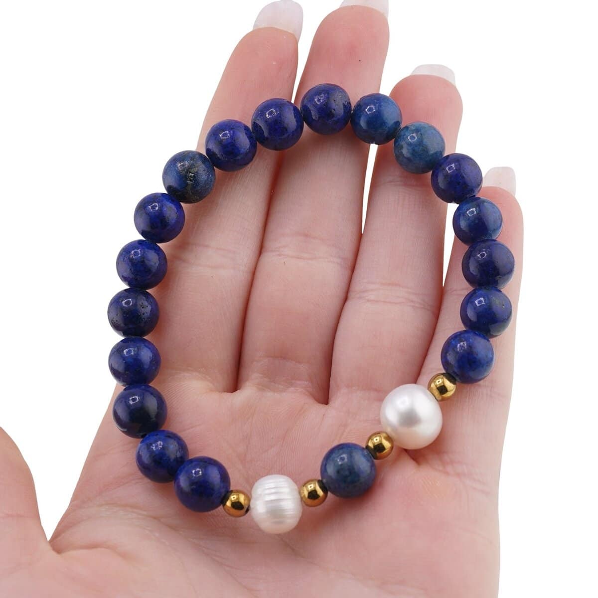 Lapis Lazuli, cunoscut și ca „piatra adevărului” sau „piatra regalității”, este apreciat pentru claritatea mentală, intuiție și inspirație. Energia sa este adesea asociată cu exprimarea autentică și cu viziunea interioară, fiind în armonie cu chakra gâtului și chakra frunții. Perlele de cultură aduc o notă de calm și blândețe, susținând echilibrul emoțional și deschiderea inimii. Împreună, creează o prezență liniștitoare, potrivită pentru relaxare, concentrare și starea de bine la nivel emoțional și spiritual.