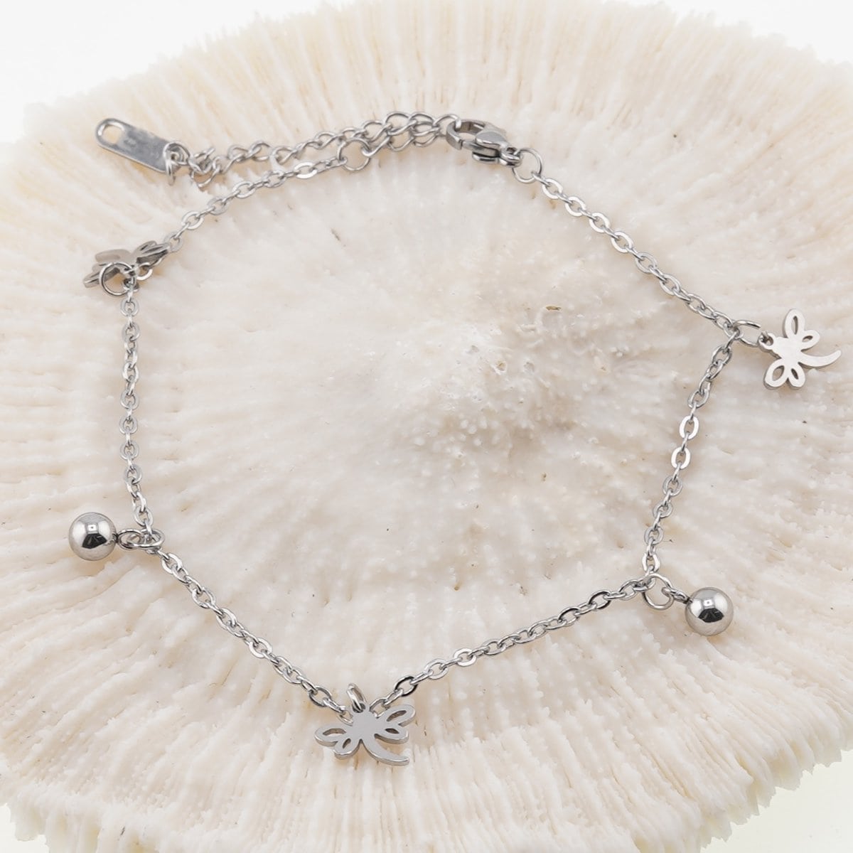 Bratara pentru glezna din inox argintiu cu charm model libelula.