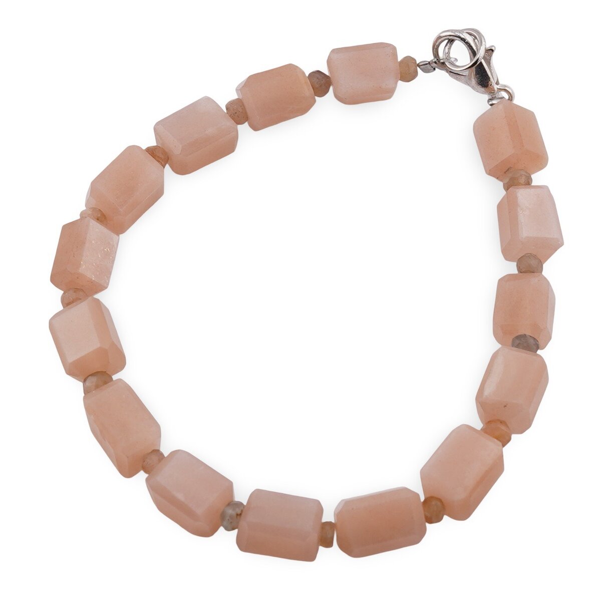 Brățară Piatra Lunii piersică fațetată 8–10 mm și discuri fațetate 4 mm