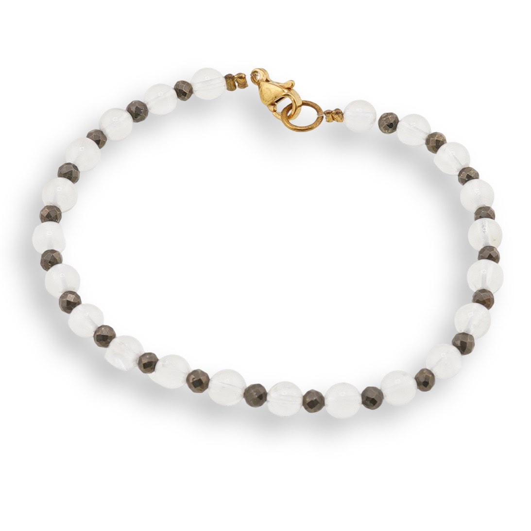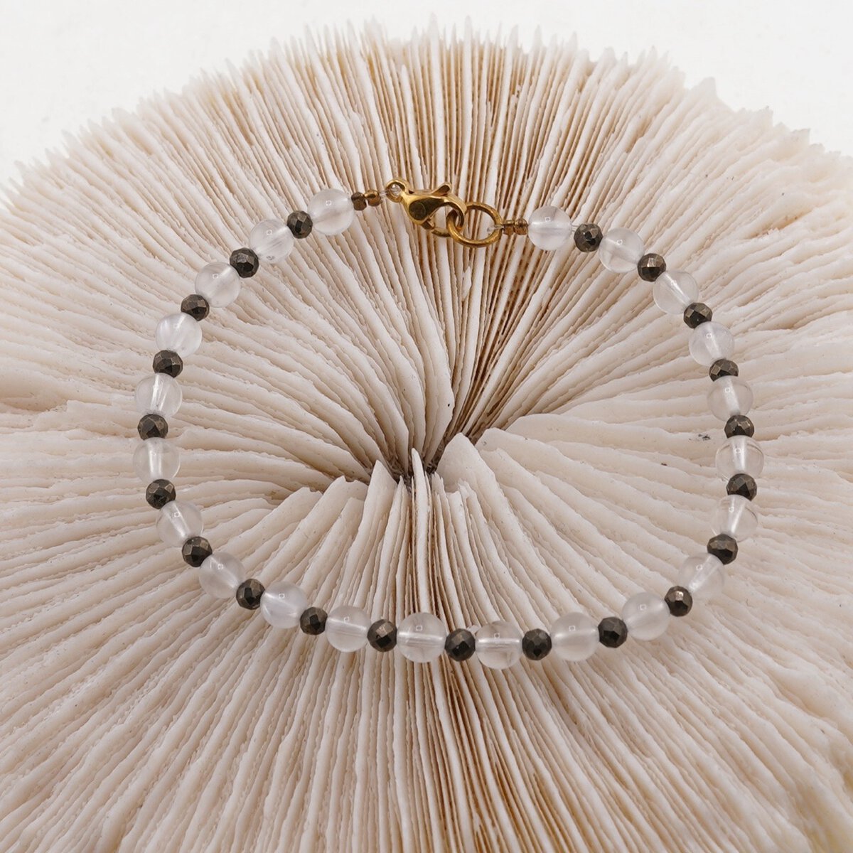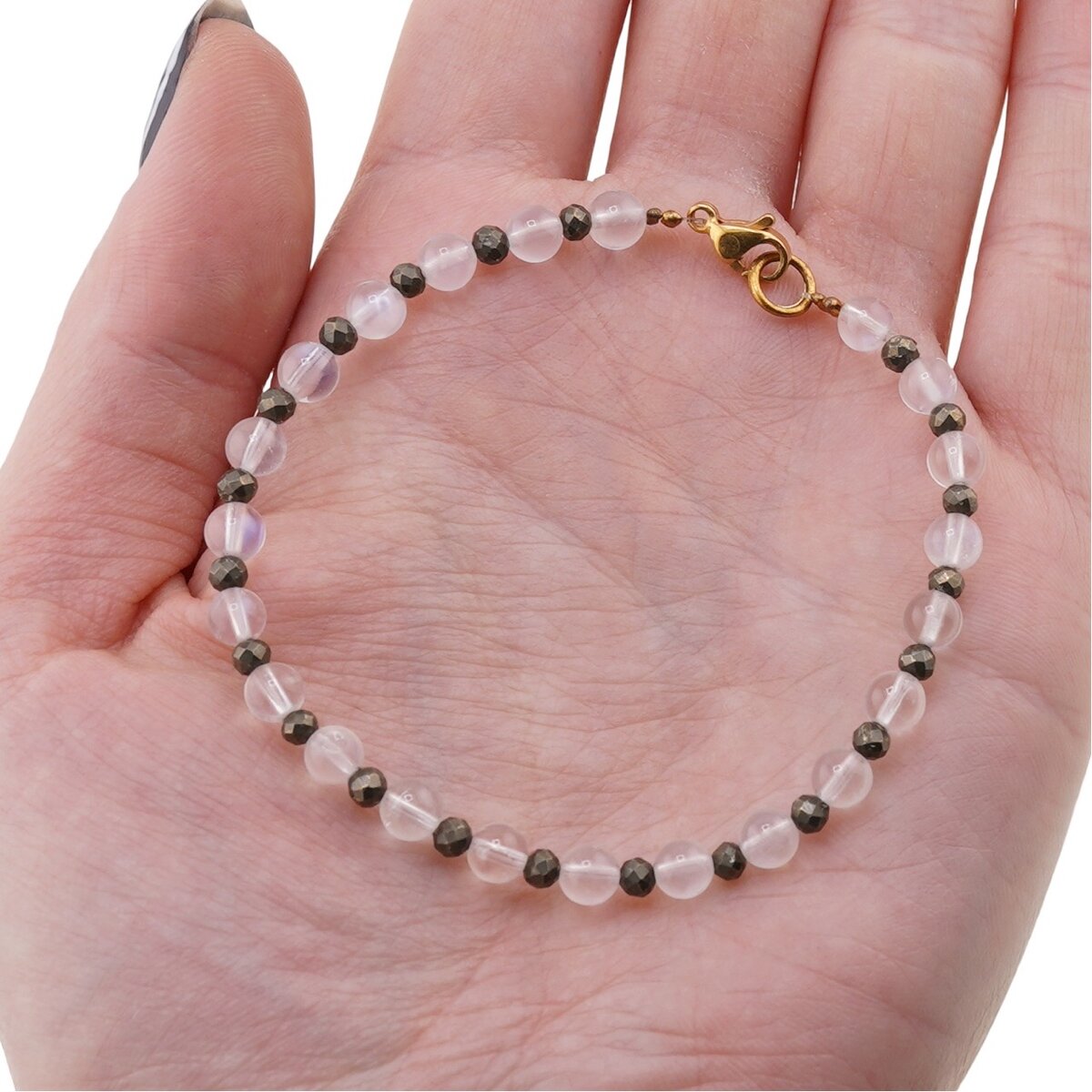 Bratara Piatra lunii sfere 4mm si Pirita sfere fatetate 3mm
