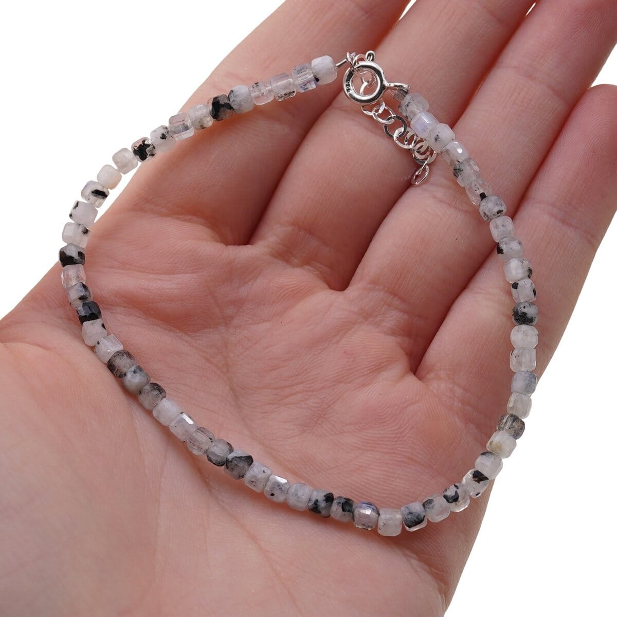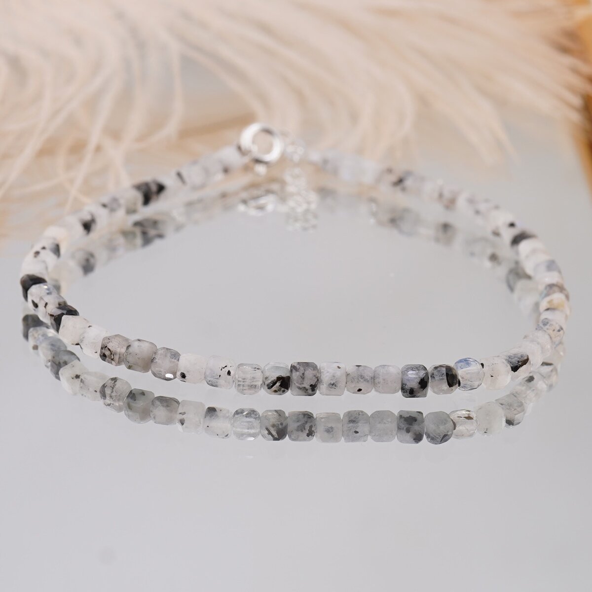 Bratara Piatra Lunii turmalinata cuburi fatetate cu Argint 925, 3mm