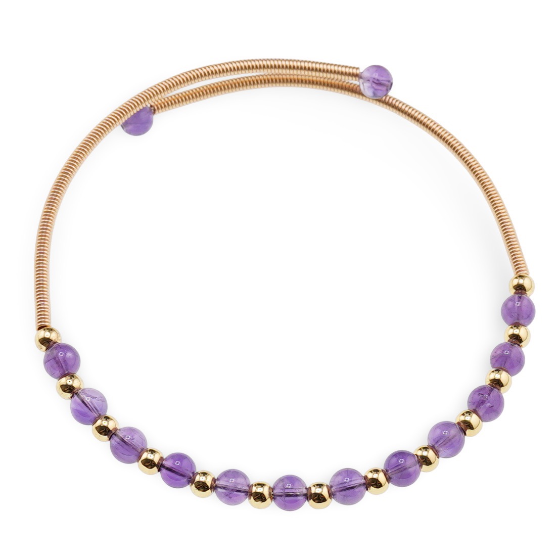 Brățară reglabilă fără închidere cu Ametist sfere 4 mm