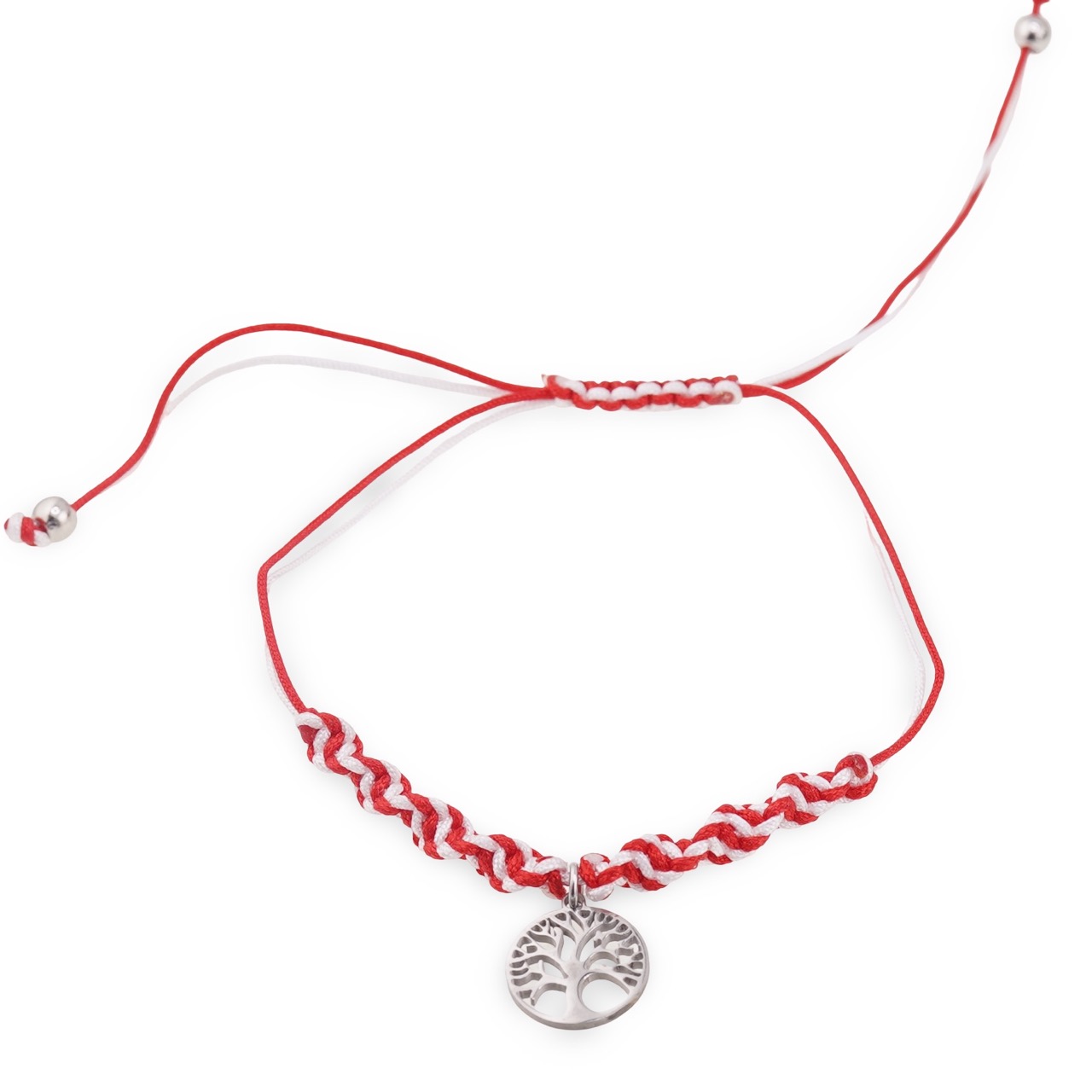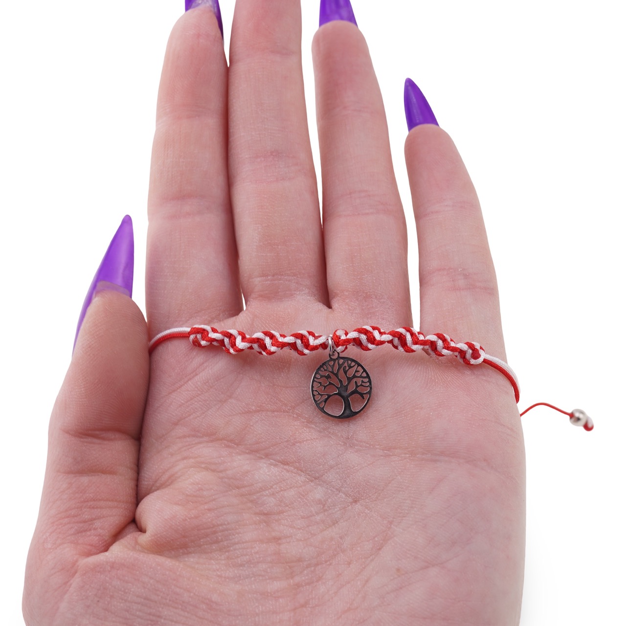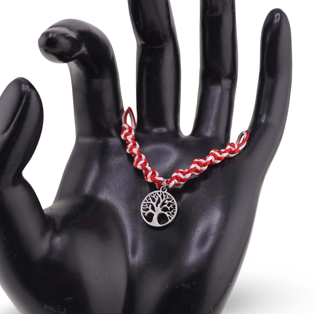 Bratara reglabila, snur alb si rosu cu charm copacul vietii