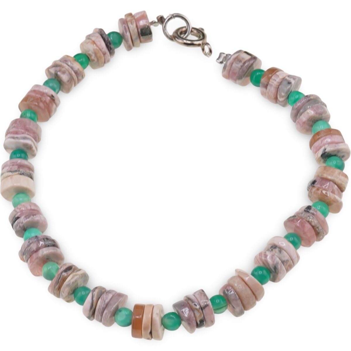 Bratara Rodocrozit discuri 6-7mm si Onix verde sfere 3-4mm