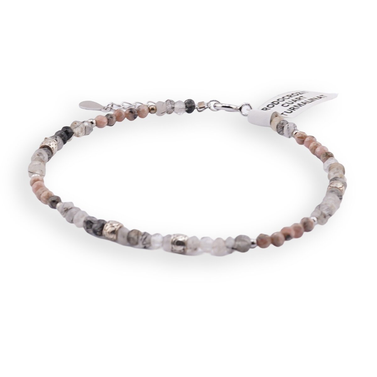 Creată pentru momentele în care îți dorești mai multă liniște interioară și relații armonioase, această brățară îmbină rodocrozitul în nuanțe calde de roz cu accente gri de cuart turmalinat. Montată pe elemente din argint 925, piesa oferă o prezență elegantă, potrivită atât pentru fiecare zi, cât și pentru ocazii speciale. Cristalele naturale, atent selectate, aduc împreună rafinamentul sferelor și al discurilor fațetate, păstrând un echilibru vizual discret și plăcut.
