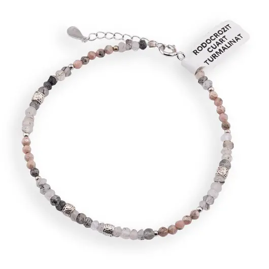 Alege această brățară din argint 925 cu rodocrozit și cuart turmalinat pentru a-ți susține drumul către dragoste, armonie și protecție. Poart-o aproape de inimă și lasă-i vibrația să te inspire în fiecare zi.