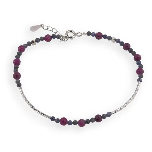 Bratara Safir sfere fatetate 3mm si Rubin sfere fatetate 4mm cu bara arcuita din Argint 925