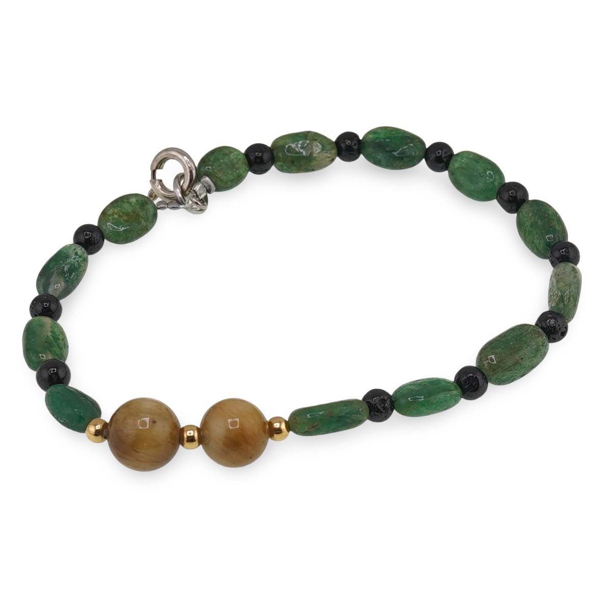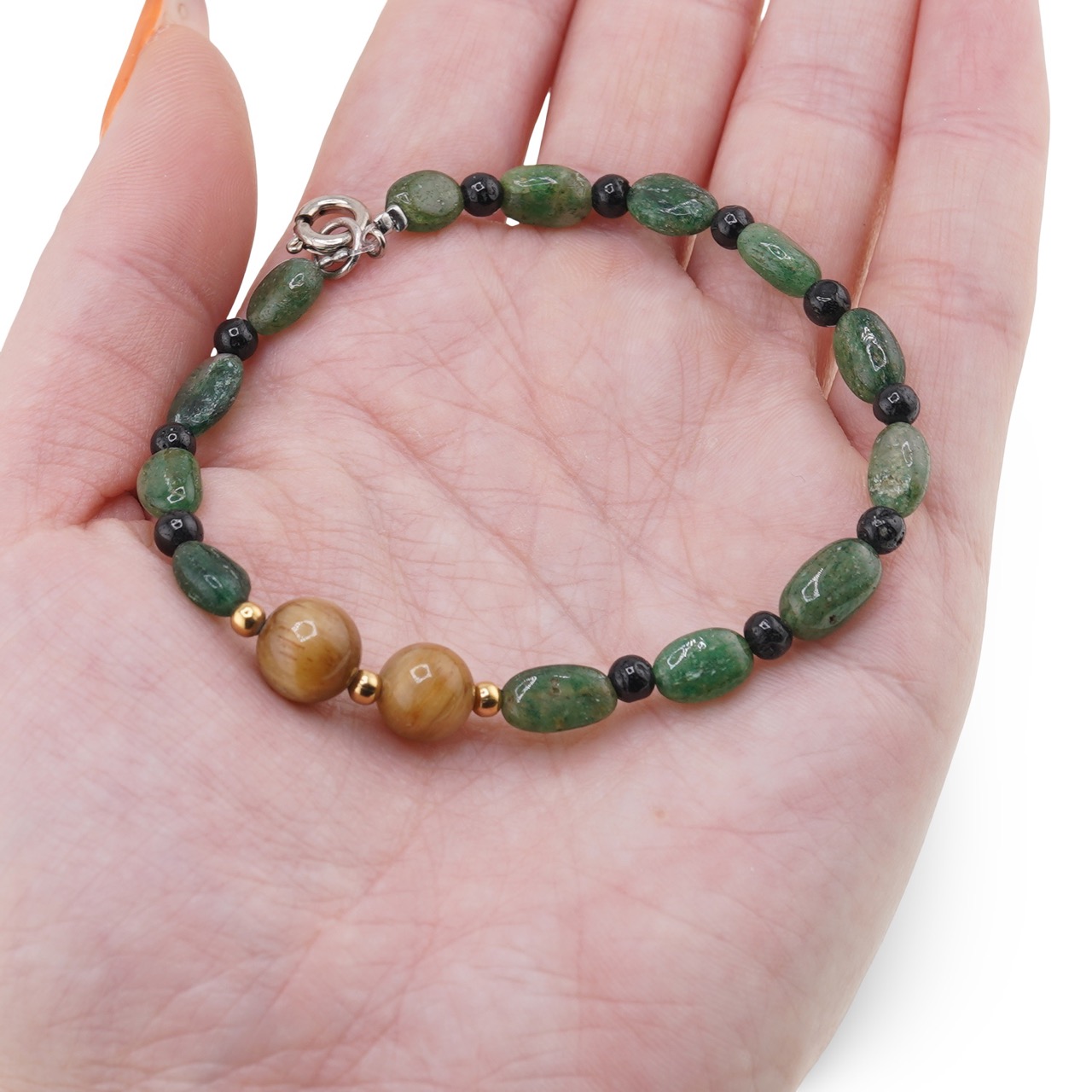 Bratara Scutul Inteleptului - Jad verde 7-10mm, Turmalina neagra si Ochi de tigru galben 4-8mm