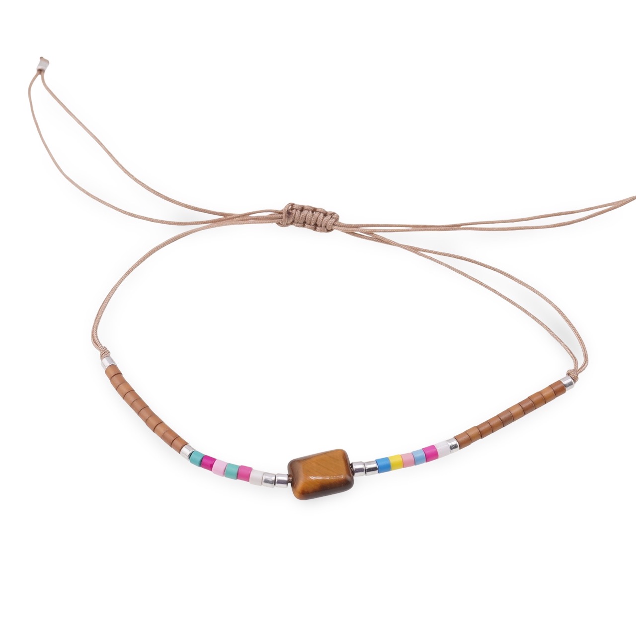 Bratara snur reglabil, Ochi de tigru dreptunghiular si elemente colorate