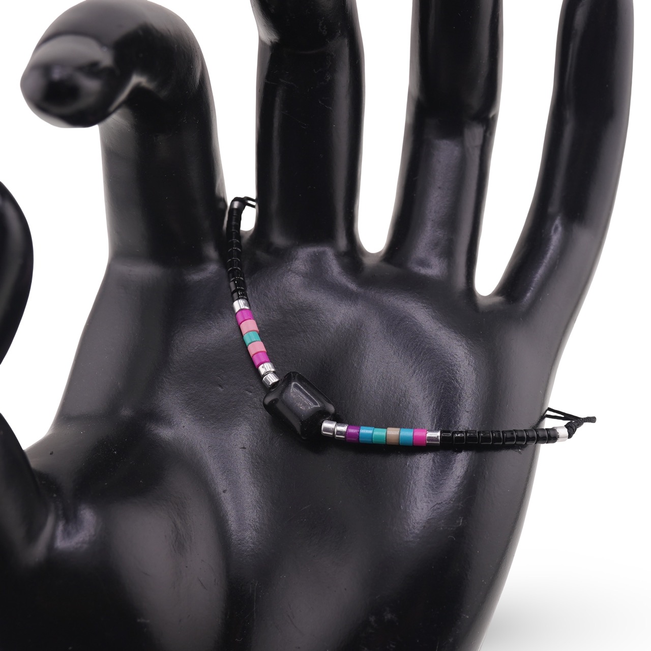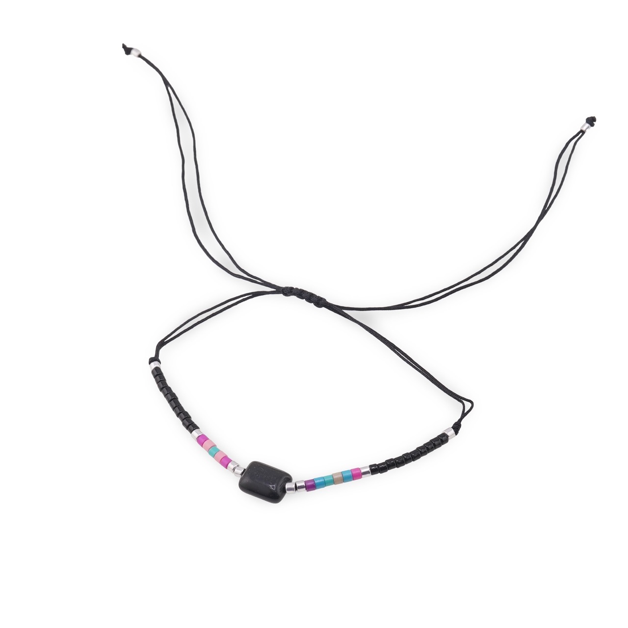 Bratara cu snur reglabil, cu Onix dreptunghiular si accente discret colorate, este gândită pentru tine dacă îți dorești mai multă stabilitate interioară și claritate în decizii. Piatra naturală de Onix, cu nuanța sa neagră profundă, este cunoscută pentru energia ei sobră și calmă, care te poate ajuta să rămâi ancorat în prezent, chiar și în perioade aglomerate sau tensionate.