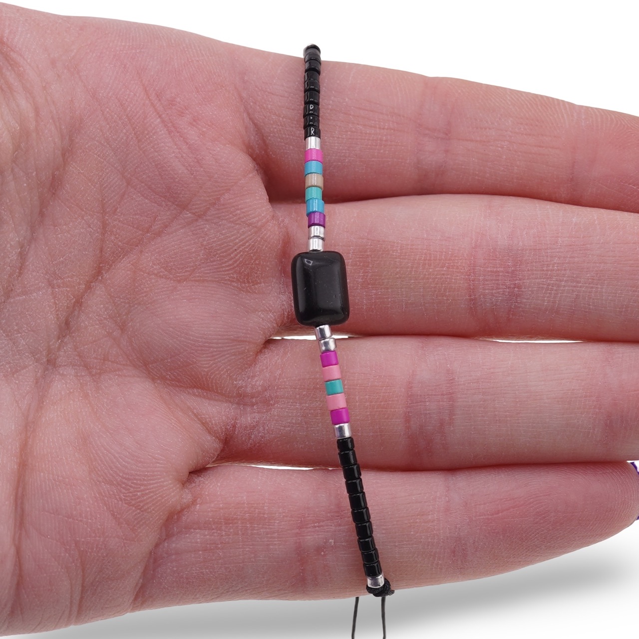 Brățara cu șnur reglabil este ușor de adaptat pe încheietură, astfel încât să o porți confortabil în orice moment. Elementele colorate adaugă o notă veselă și modernă, echilibrând eleganța clasică a Onixului negru. Dacă simți nevoia de mai mult curaj, ancorare și protecție într-o formă discretă și plăcută, această brățară poate deveni aliatul tău de zi cu zi, amintindu-ți să rămâi conectat cu tine și cu drumul tău.