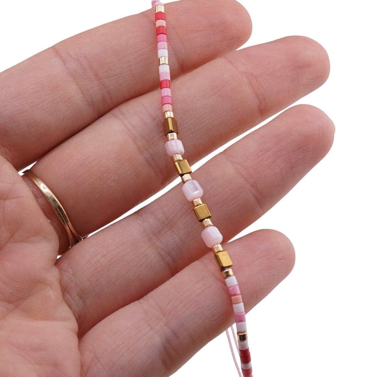 Bratara snur roz, Sidef roz cuburi, Lungime bratara: 19cm - Mana medie Bratara snur roz, Sidef roz cuburi, Lungime bratara: 17cm - Mana mica Bratara snur roz, Sidef roz cuburi, Lungime bratara: 21cm - Mana mare Bratara snur roz, Sidef roz cuburi, Lungime bratara: 14cm - Mana de copil