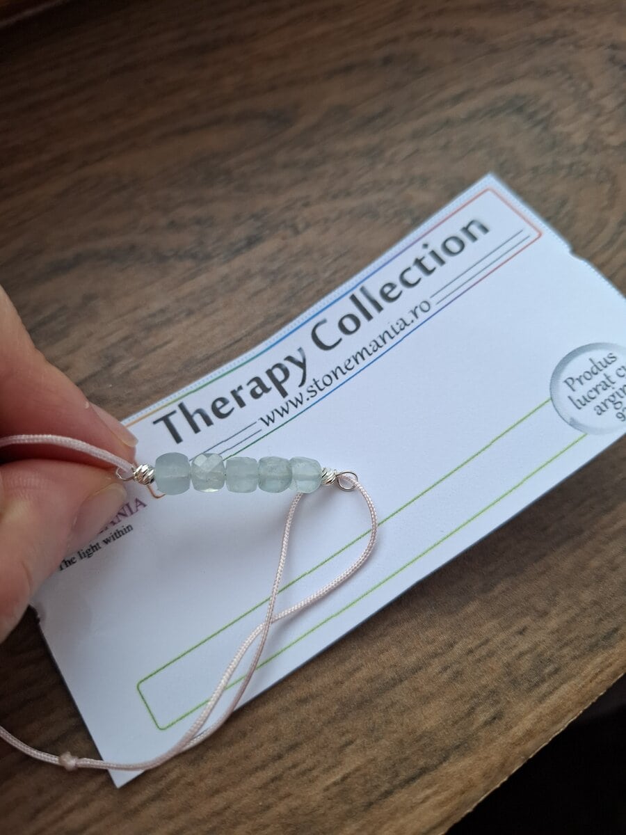 Bratara Therapy pe fir de matase confectionata cu acvamarin cuburi 4-5mm si argint 925.