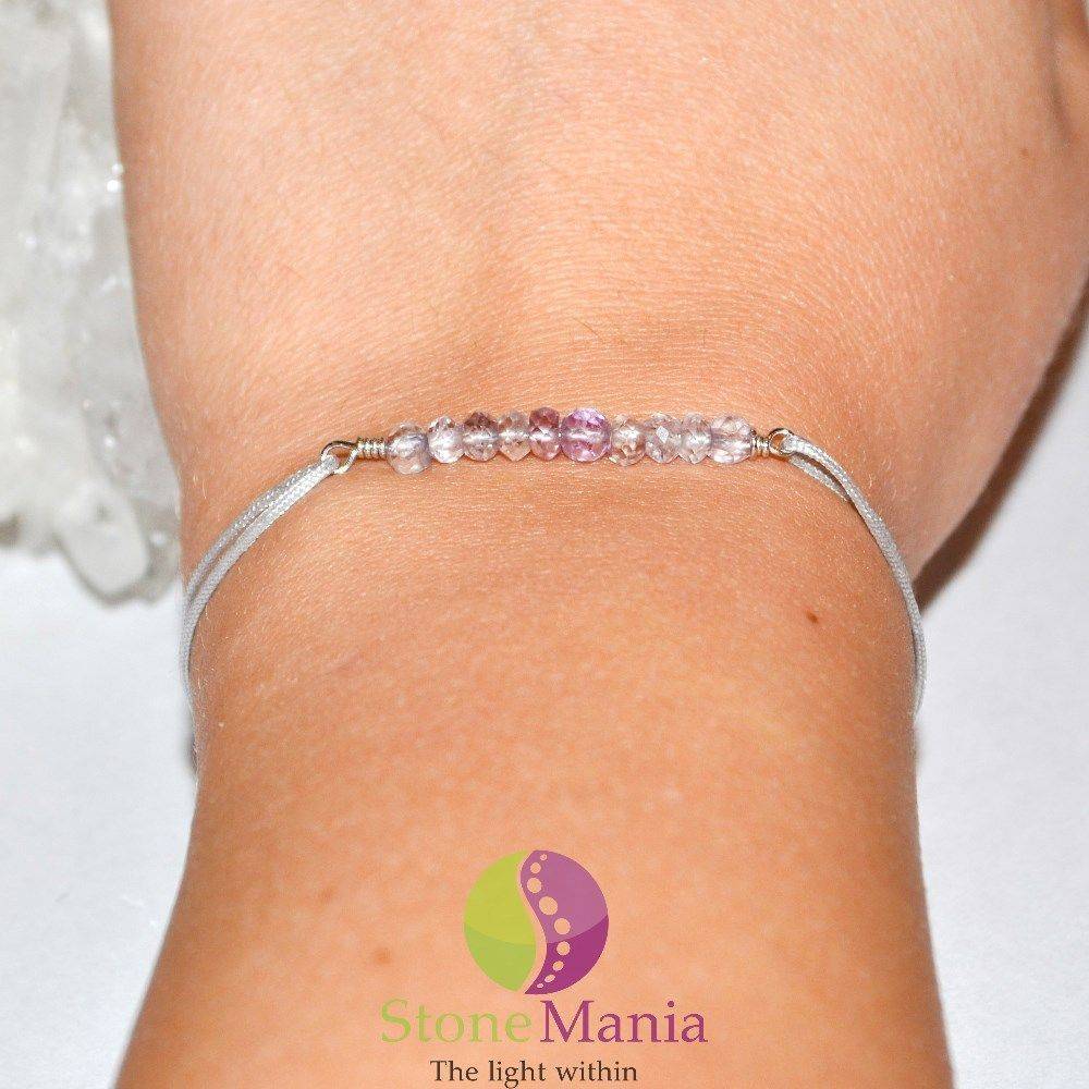 Bratara Therapy pe fir de matase confectionata cu discuri mici de ametist lavanda (pietre semipretioase naturale) si argint 925.