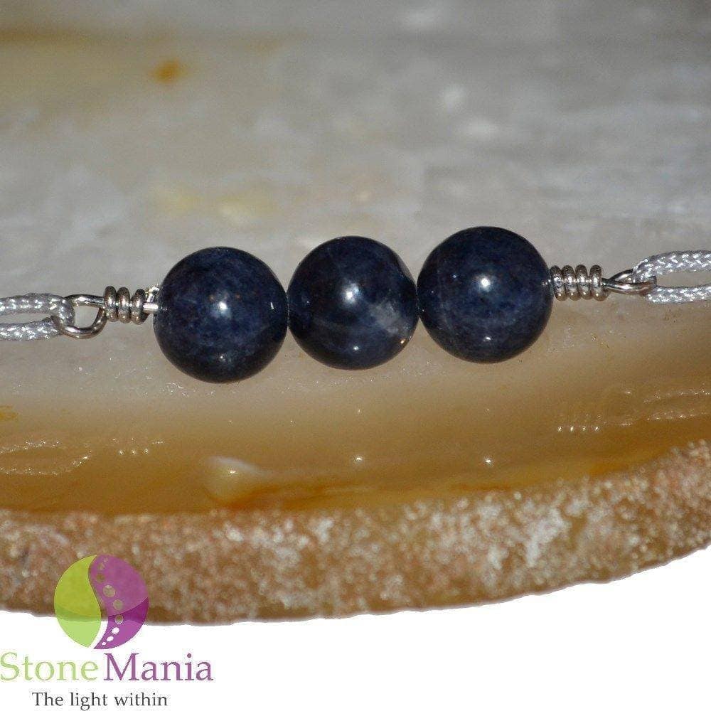 Bratara Therapy pe fir de matase confectionata cu Safir albastru sfere 6mm (pietre semipretioase naturale) si argint 925.