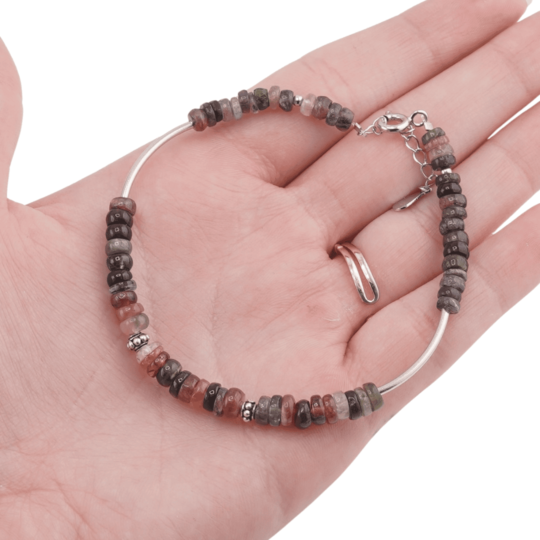 Bratara Turmalina multicolora discuri cu Argint 925, 5mm.