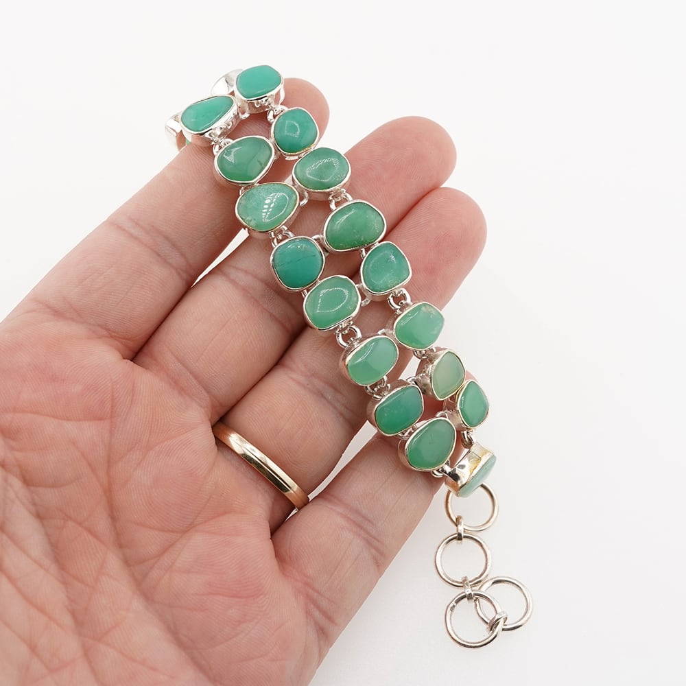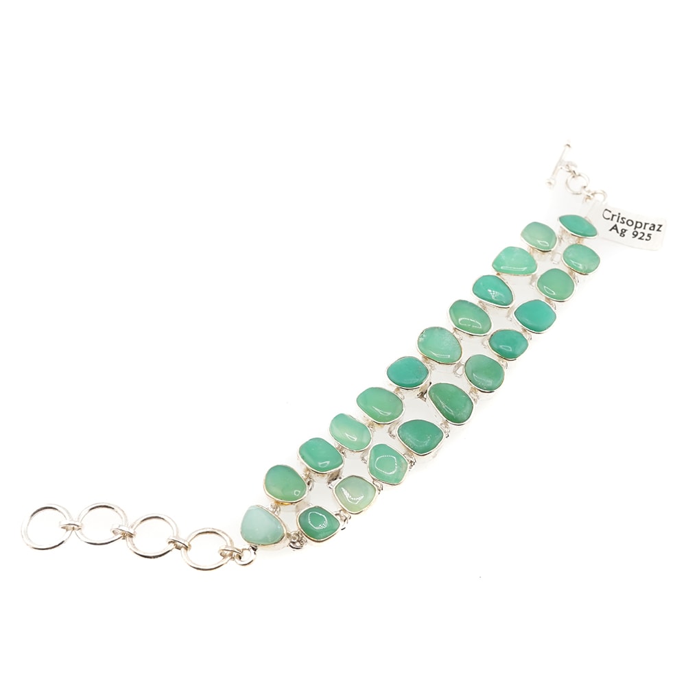 Bratara unicat cu crisopraz si argint 925, 22mm latime. Bratara confectionata cu cristale naturale si montura din argint 925.
