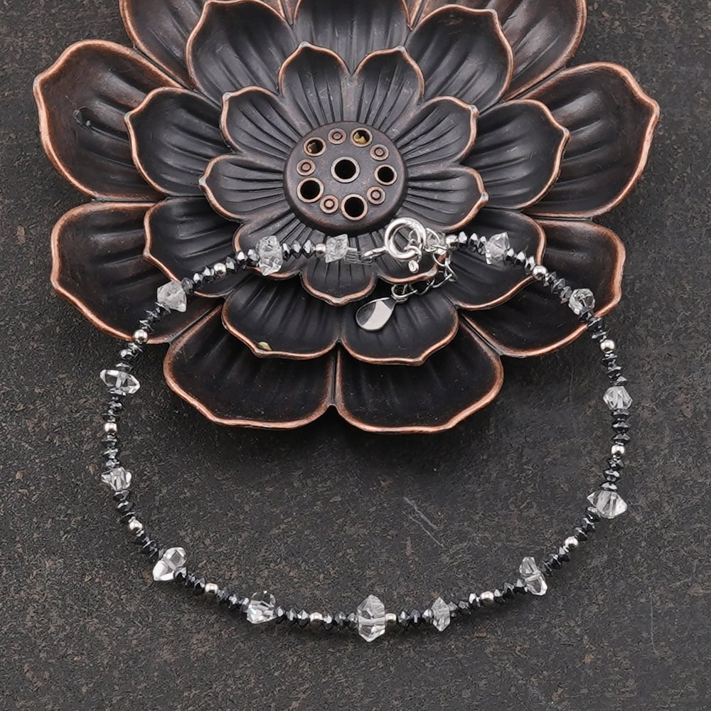 Bratara unicat cu Diamant Herkimer si Hematit discuri, argint 925