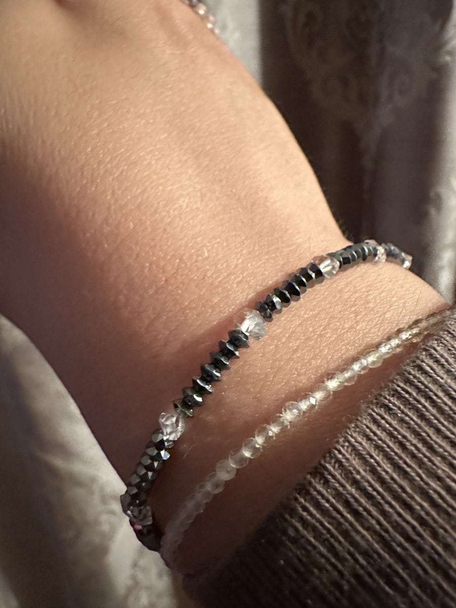 Bratara unicat confectionata manual cu Diamant Herkimer si Hematit discuri, argint 925, veti primi exact bratara din fotografie. Bratara are lungimea 19,5cm plus lantisor de prelungire, se poate scurta la cerere.