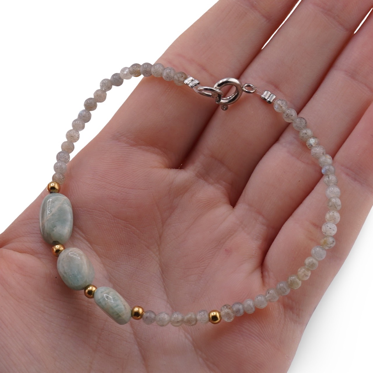 Bratara Vocea Intuitiei - Labradorit 3mm si Amazonit 8-12mm