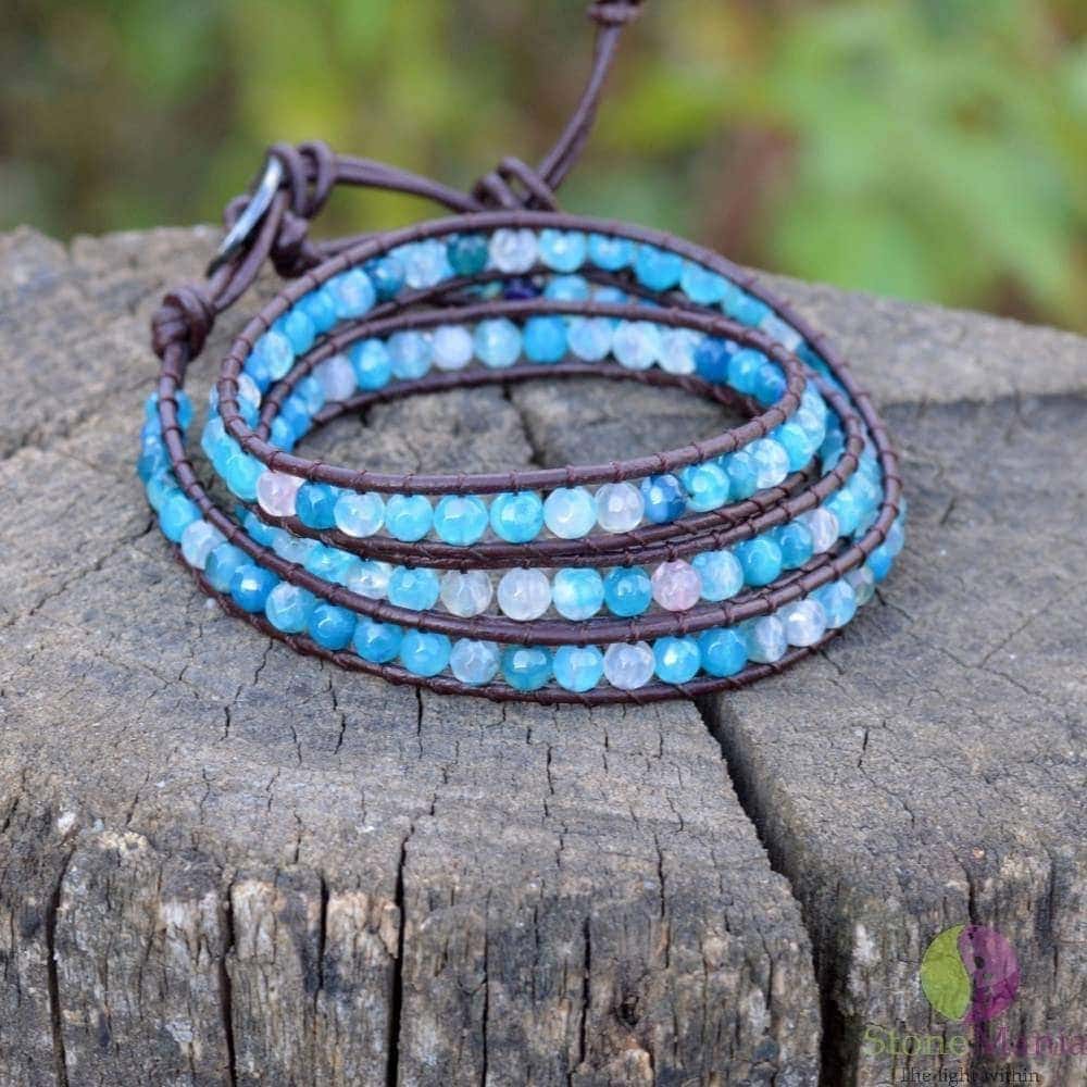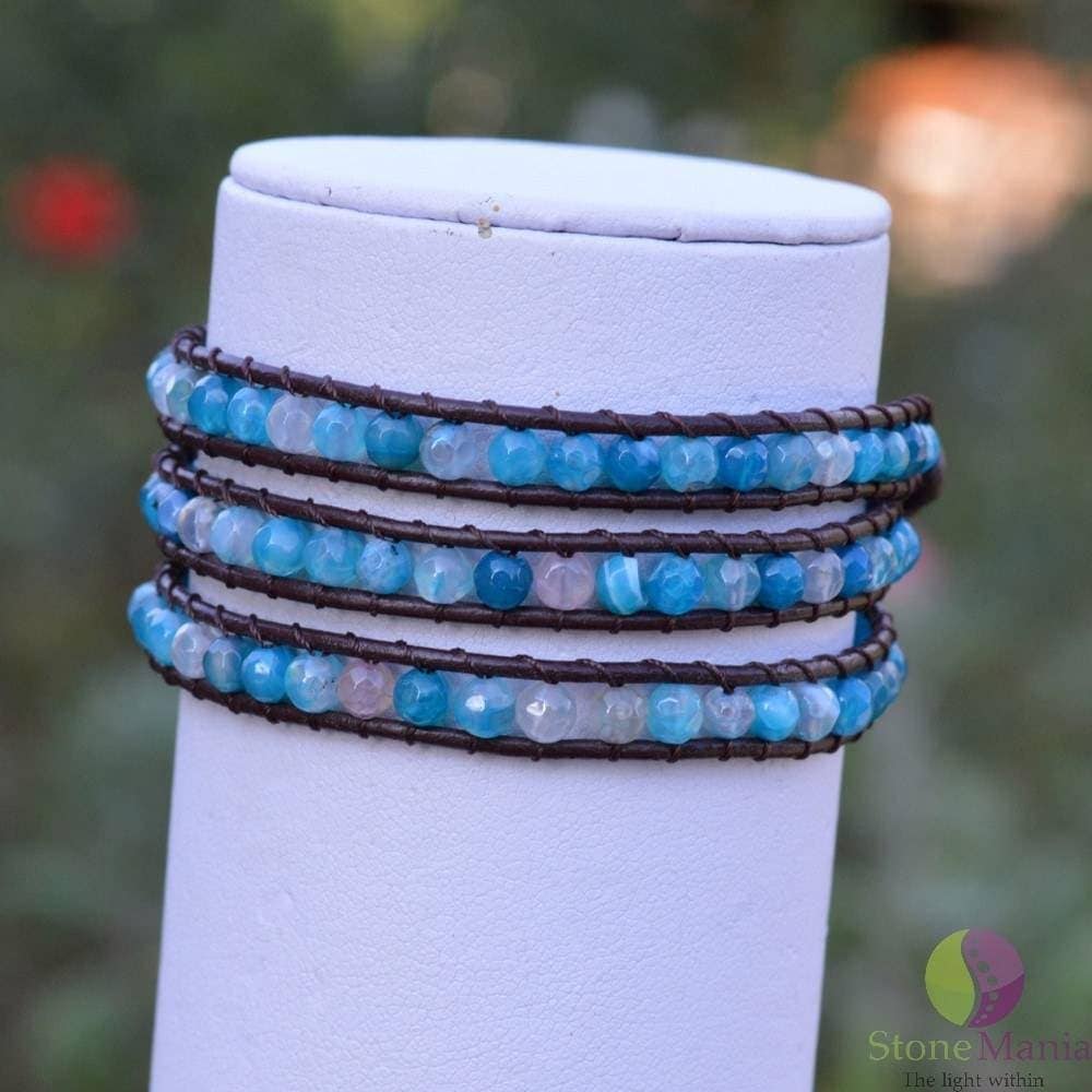 Bratara confectionata manual pietre semipretioase. Bratara wrap 3x cu agat albastru fatetat. Se ofera certificat de garantie si conformitate!