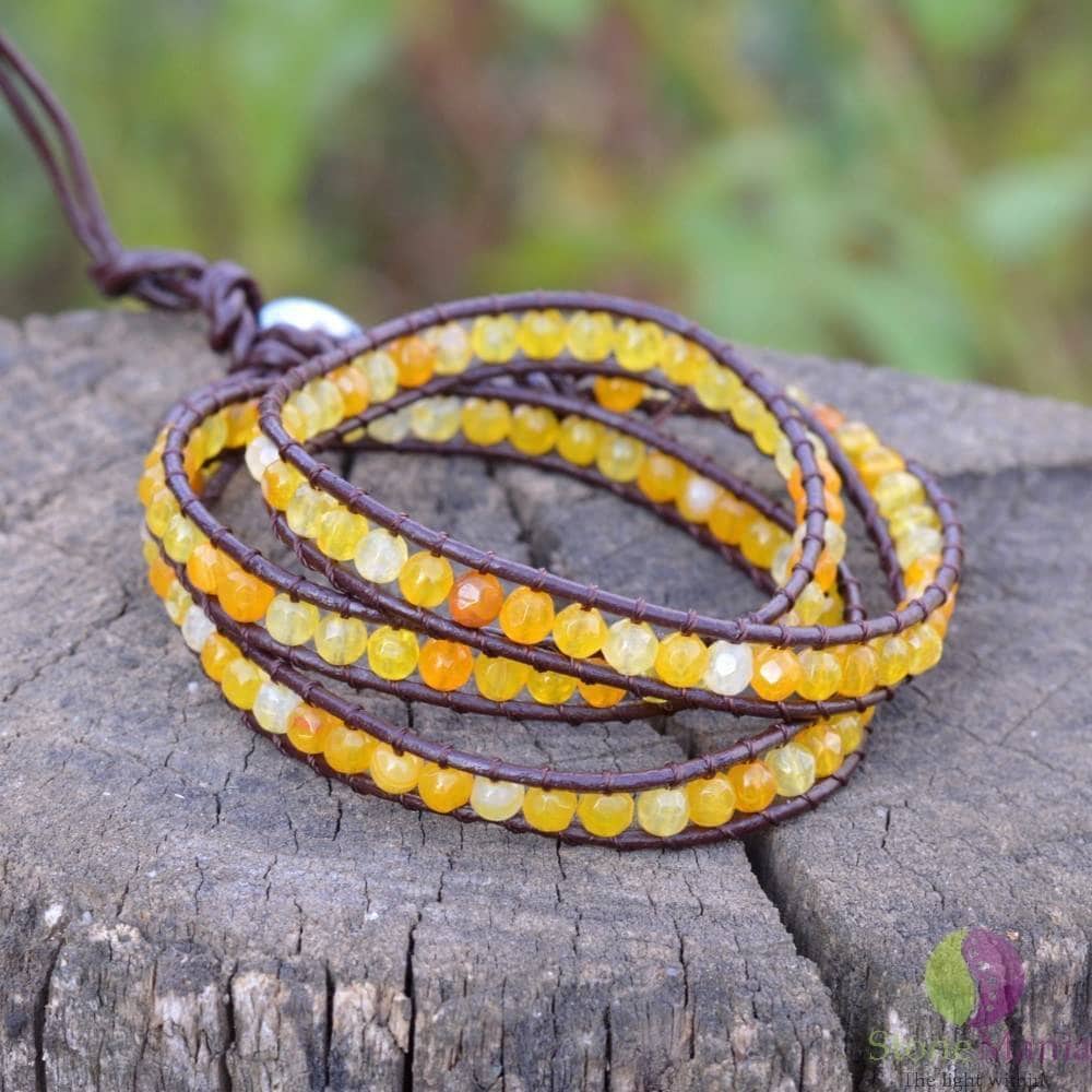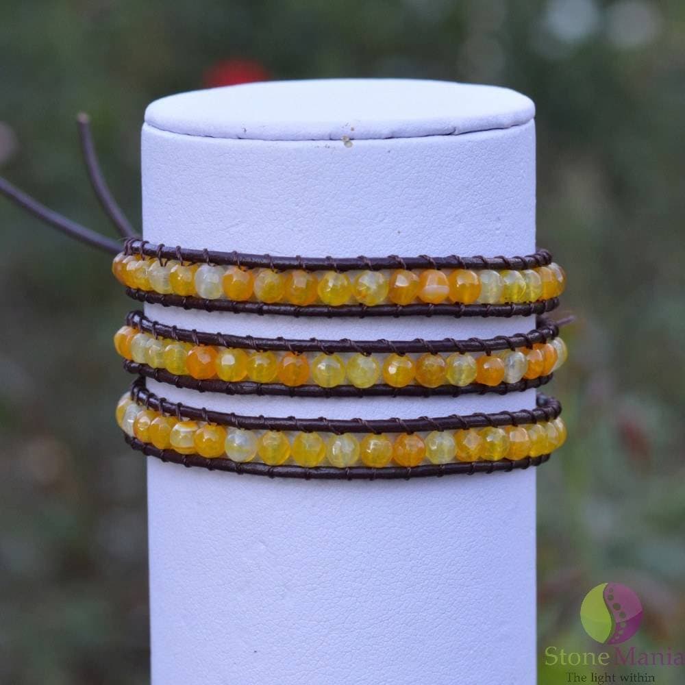 Bratara confectionata manual pietre semipretioase. Bratara wrap 3x cu agat galben fatetat. Se ofera certificat de garantie si conformitate!