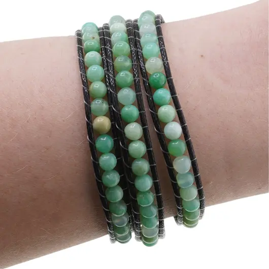 Bratara wrap tripla Crisopraz sfere, 4mm