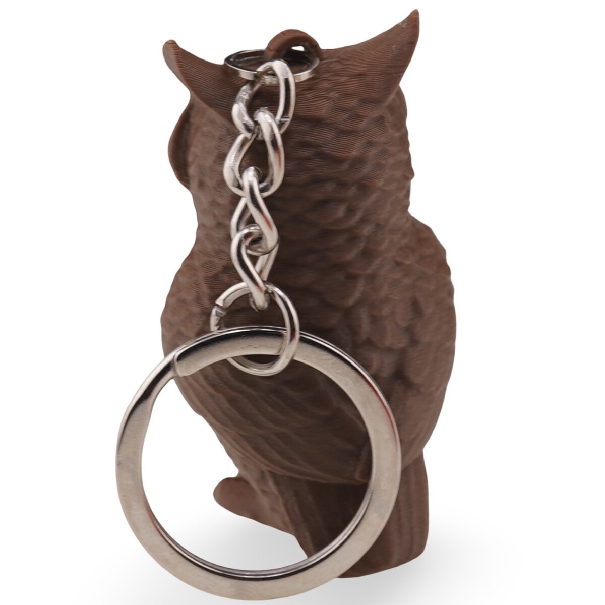 Brelocul este realizat din metal și PLA premium, un plastic rezistent, netoxic și considerat mai prietenos cu mediul, folosit în printarea 3D de precizie. Această combinație de materiale îi oferă durabilitate, păstrând în același timp un aspect plăcut la atingere și la vedere. Detaliile bufniței sunt bine conturate, astfel încât expresia și textura formei ies ușor în evidență.