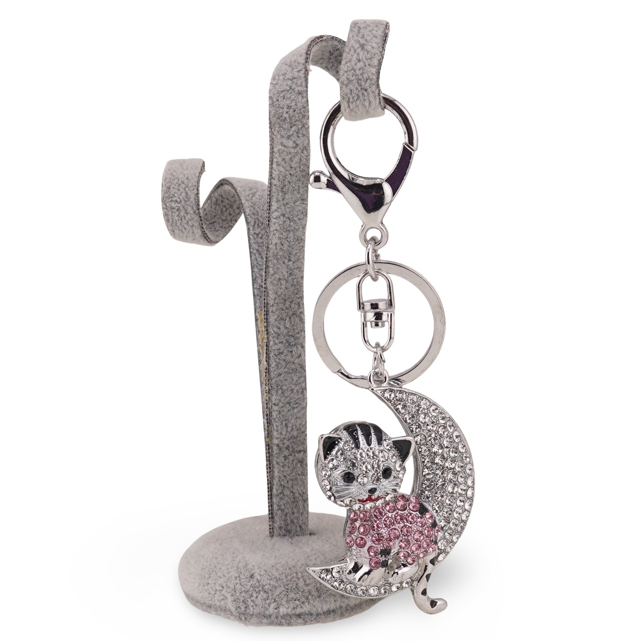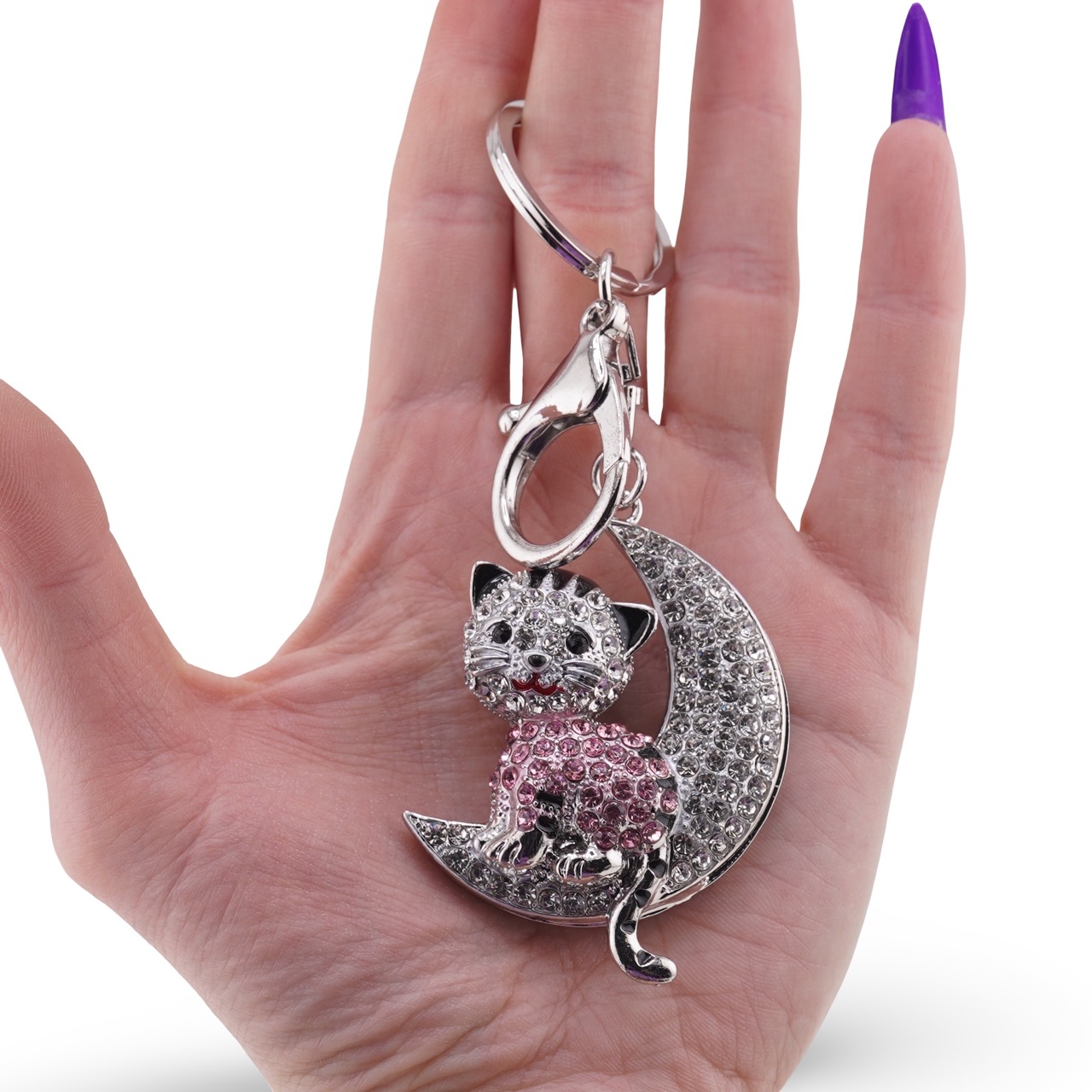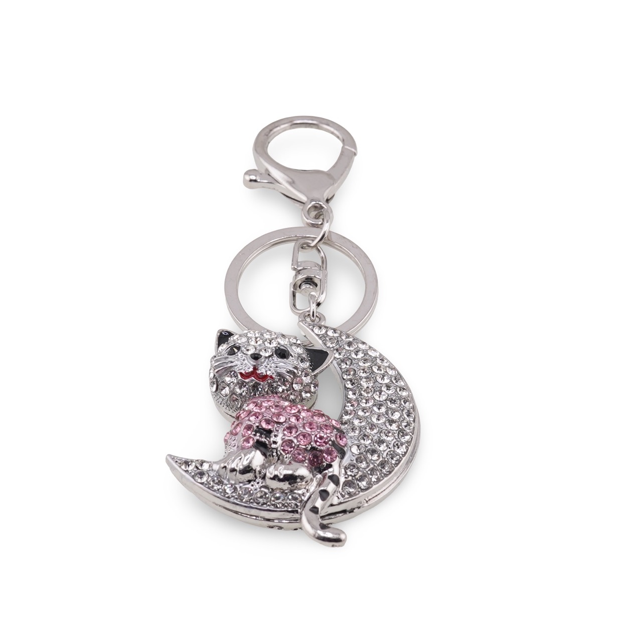 Breloc pisica roz și lună cu zirconii – mic detaliu, mare efect