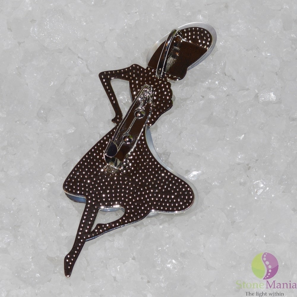 Sideful, cunoscut și ca Mother of Pearl sau „piatra liniștii”, este stratul de carbonat de calciu din interiorul scoicilor, apreciat pentru reflexele sale subtile. Modelul are dimensiuni de aprox. 86x34 mm și o montură din aliaj metalic argintiu, cu sistem de prindere tip broșă și opțiune de purtare ca pandantiv. Culoarea gri îl face ușor de integrat în ținute casual sau elegante, oferind un accent rafinat și natural.