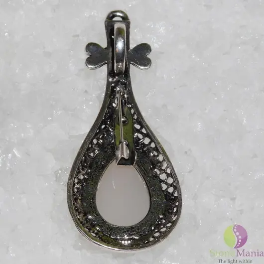 Designul sobru este susținut de o montură din aliaj metalic, cu prindere sigură, iar piatra centrală de aprox. 24x18 mm este integrată armonios în broșa de ~65x28x10 mm. Datorită durității pe scara Mohs de 6.5–7, agatul este potrivit pentru purtarea frecventă, păstrând un aspect plăcut în timp. Se prinde ușor pe sacouri, rochii sau eșarfe și se transformă rapid într-un pandantiv ce poate fi purtat pe un lanț subțire, pentru un accent modern și rafinat.