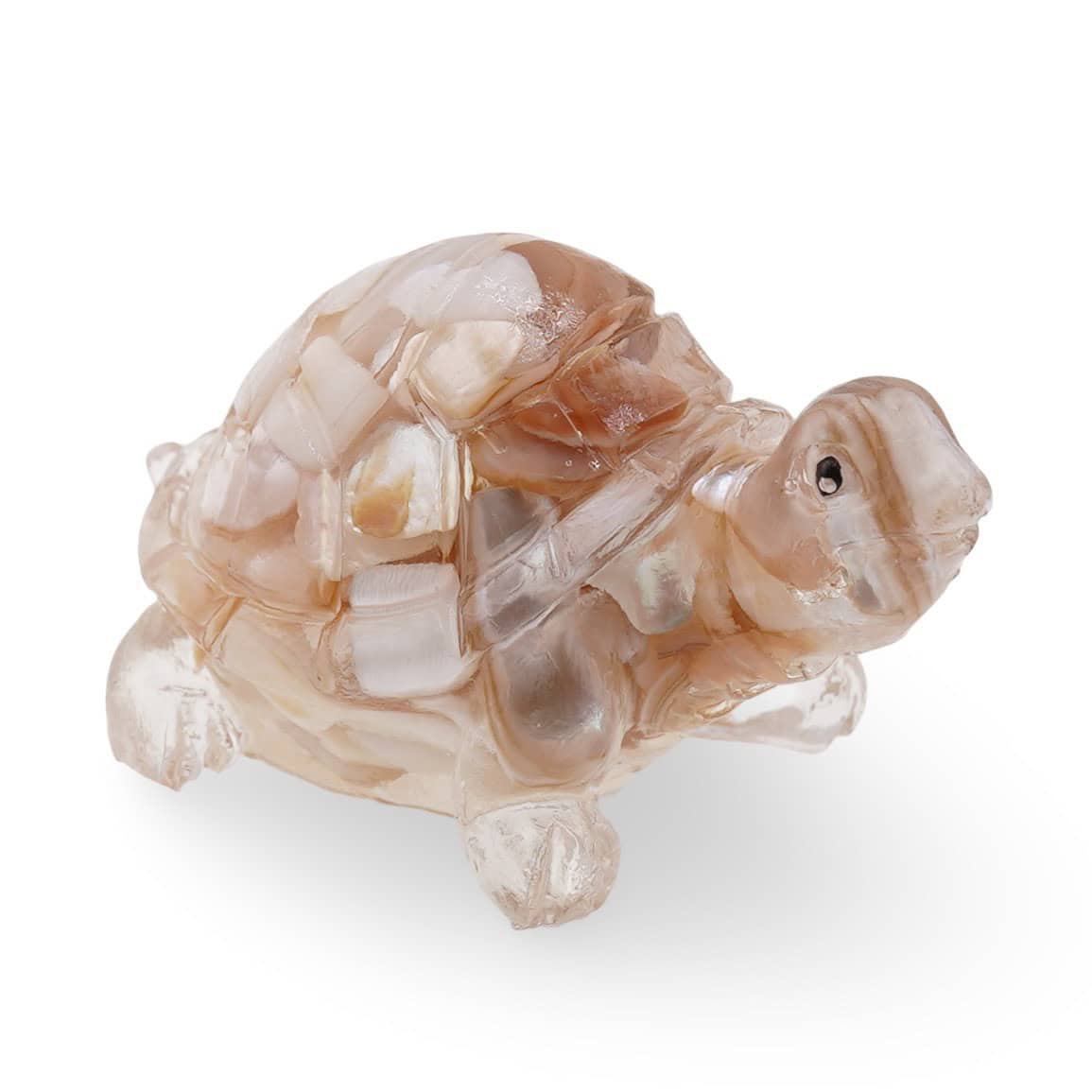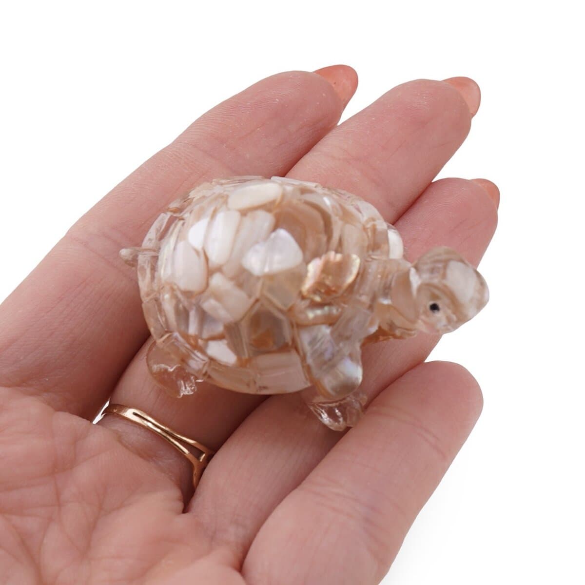 Sideful, cunoscut și sub numele de Mother of Pearl, este apreciat pentru aspectul său delicat și pentru asocierea sa cu liniștea, calmul și relaxarea. În această figurină gravată, spartura de sidef crem adaugă textură și un plus de farmec vizual, iar forma de broască țestoasă este aleasă adesea pentru ideea de stabilitate, protecție și ritm echilibrat. Este un produs potrivit pentru cei care își doresc un decor discret, dar cu o notă simbolică și personală.