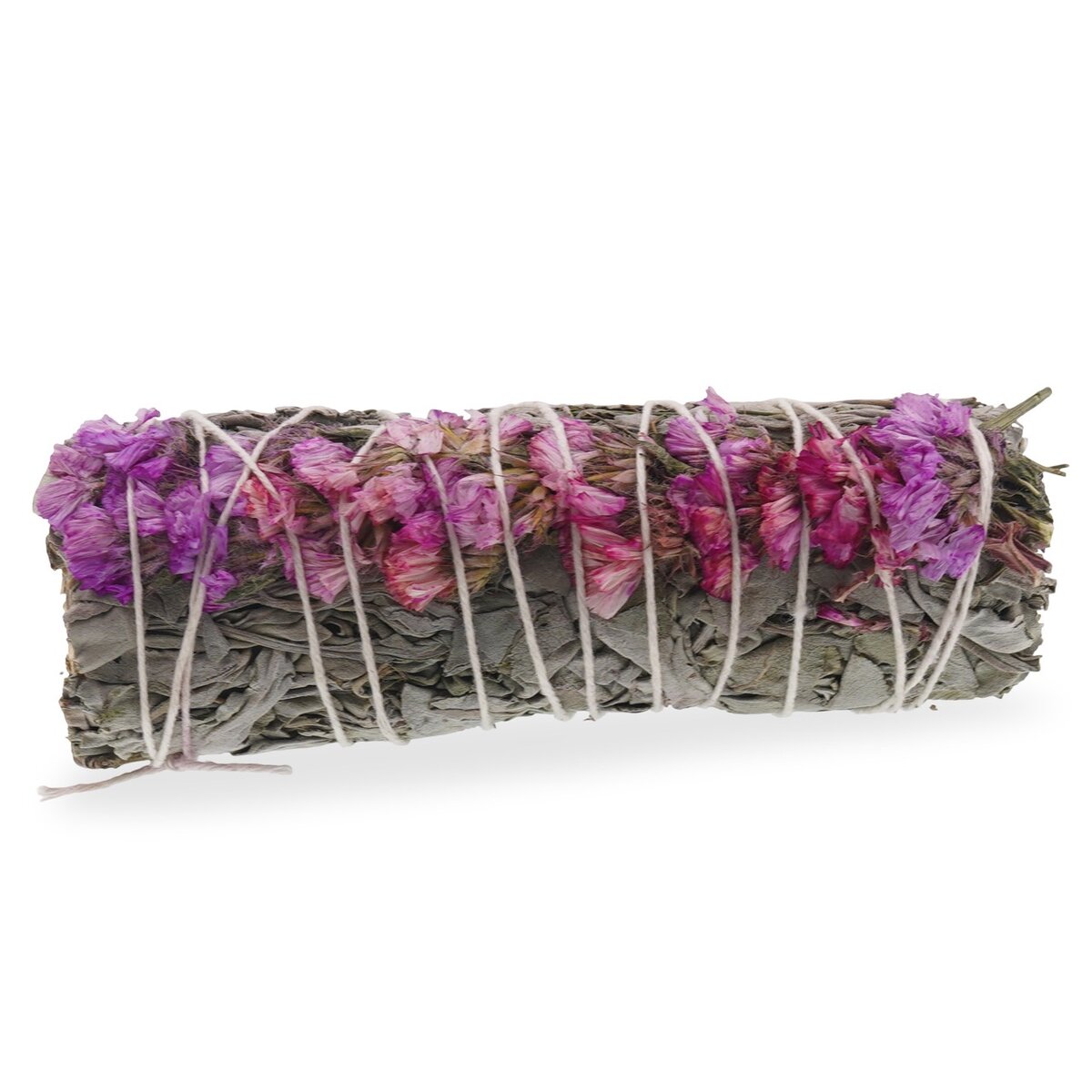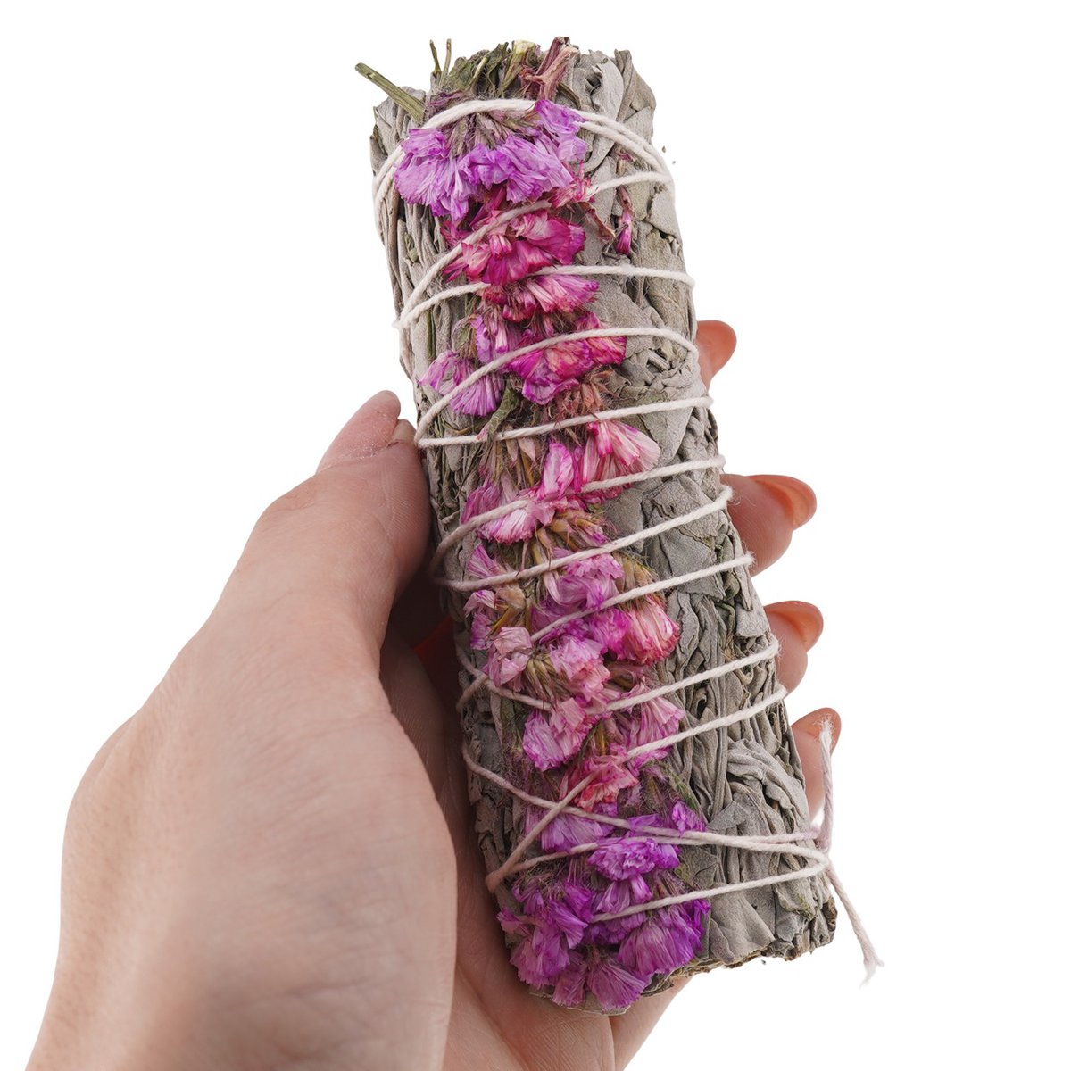 Buchet Salvie Alba cu Flori Roz de Sinuata - 10cm. California White Sage este recoltata in cea mai buna perioada a anului si uscata in conditii optime pentru a-si pastra parfumul si calitatea mult timp.