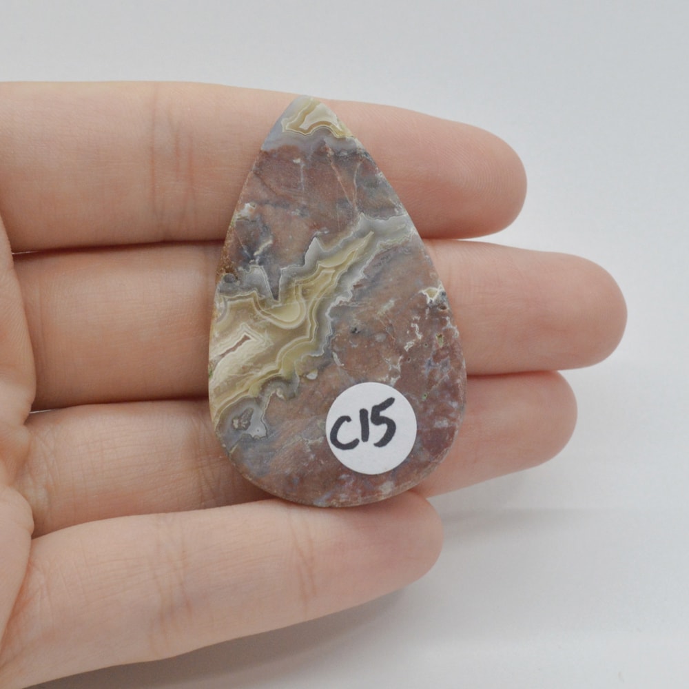 Piatra semipretioasa naturala pentru montat in bijuterii, Cabochon Agat Crazy Lace 46x29x5mm C15. Se ofera certificat de garantie si conformitate.