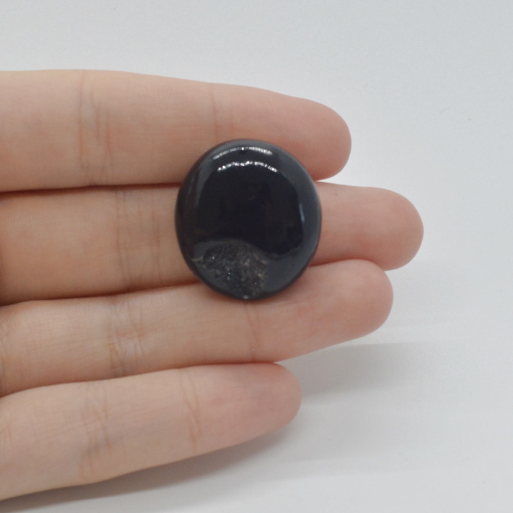 Piatra semipretioasa naturala pentru montat in bijuterii, Cabochon Agat Negru Druzy 25x23x9mm C56. Se ofera certificat de garantie si conformitate.