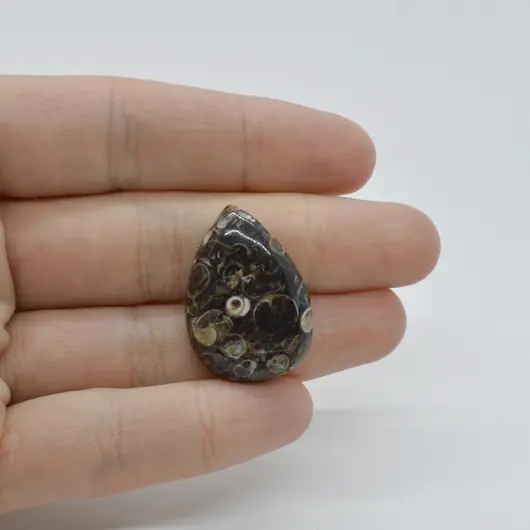 Piatra semipretioasa naturala pentru montat in bijuterii, Cabochon Agat Turitela 27x19x6mm C7. Se ofera certificat de garantie si conformitate.