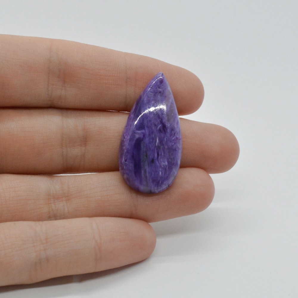 Piatra semipretioasa naturala pentru montat in bijuterii, Cabochon Charoit 32x16x6mm C41. Se ofera certificat de garantie si conformitate.