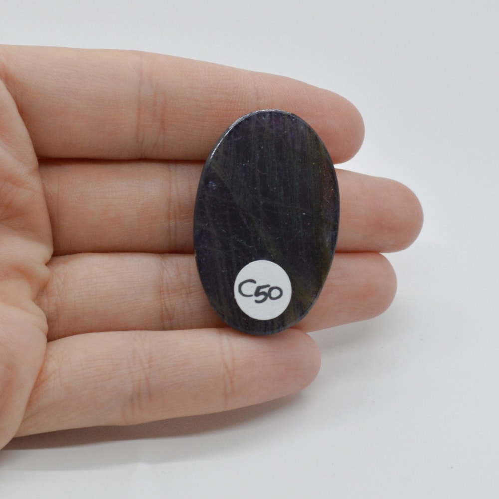 Piatra semipretioasa naturala pentru montat in bijuterii, Cabochon Iolith Sun Stone 39x25x6mm C50. Se ofera certificat de garantie si conformitate.