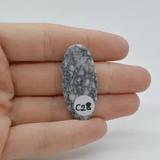 Piatra semipretioasa naturala pentru montat in bijuterii, Cabochon Pinolith 37x17x5mm C28. Se ofera certificat de garantie si conformitate.