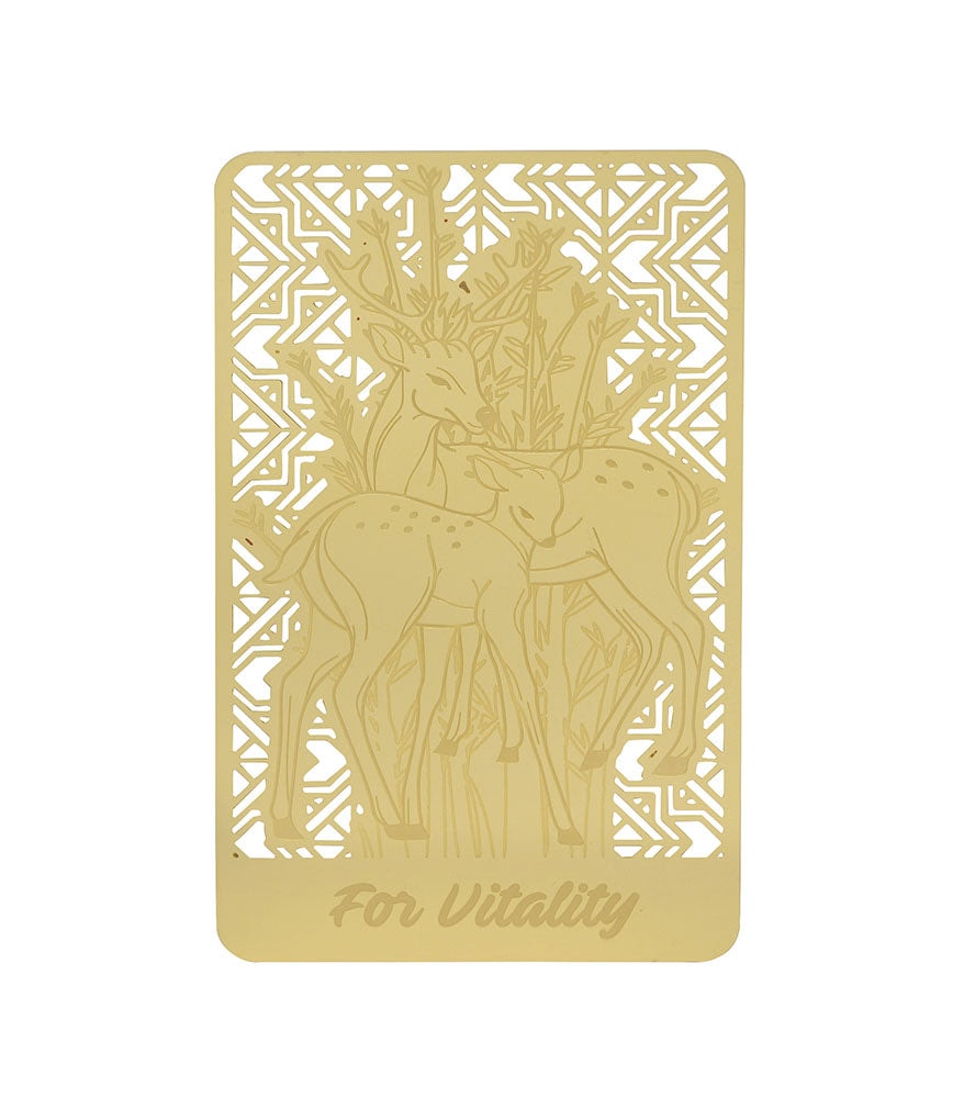 Card feng shui din metal auriu cu cerb vindecator pentru vitalitate, 2026