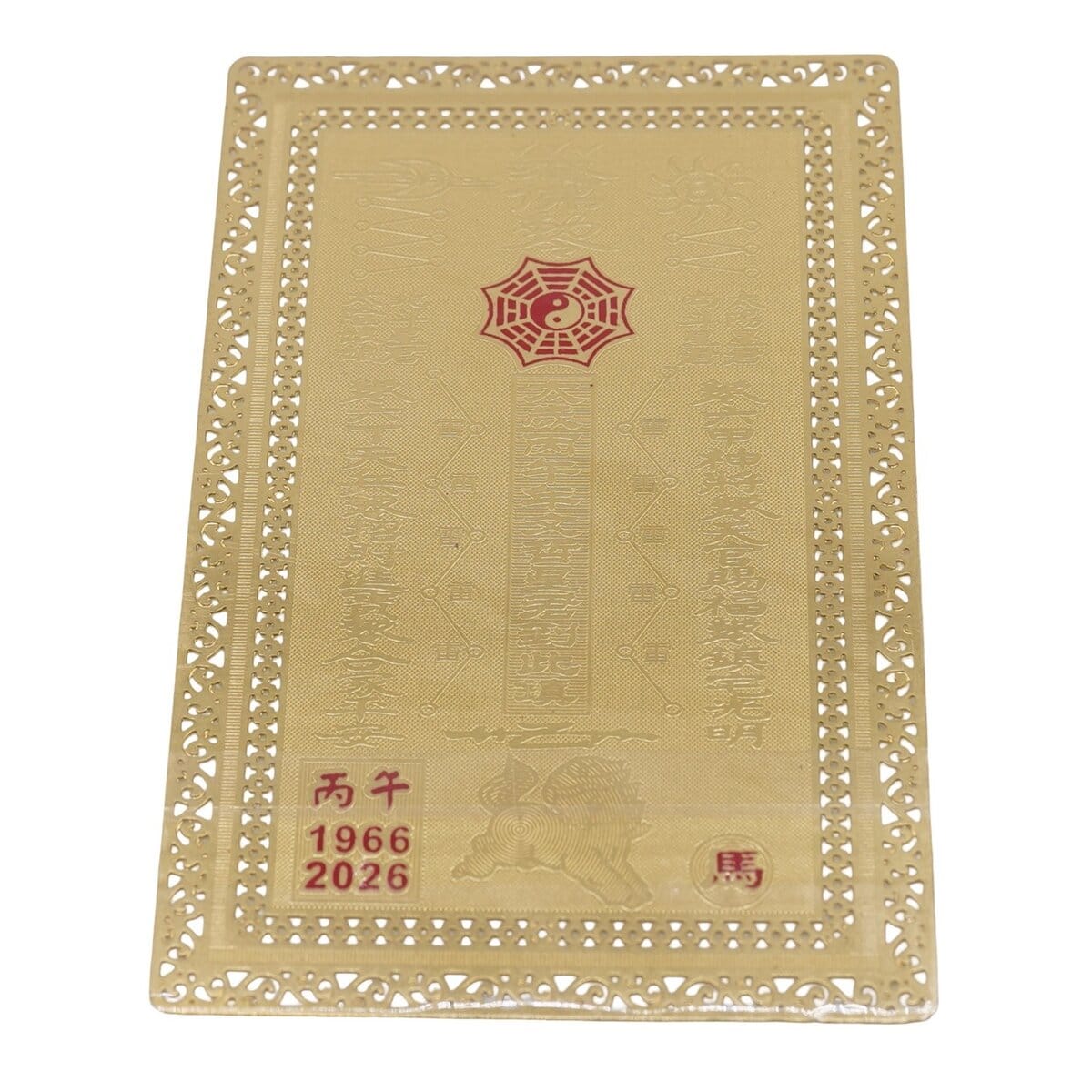 Creat pentru energia anului 2026, acest card feng shui te însoțește ca un talisman discret de protecție Tai Sui. Nuanțele auriu și roșu, asociate cu vitalitatea și buna funcționare a lucrurilor, scot în evidență simbolurile și oferă o prezență plăcută vizual. Formatul dreptunghiular, subțire, similar unui card bancar, îl face ușor de purtat în portofel sau de ținut aproape, acasă ori la birou.